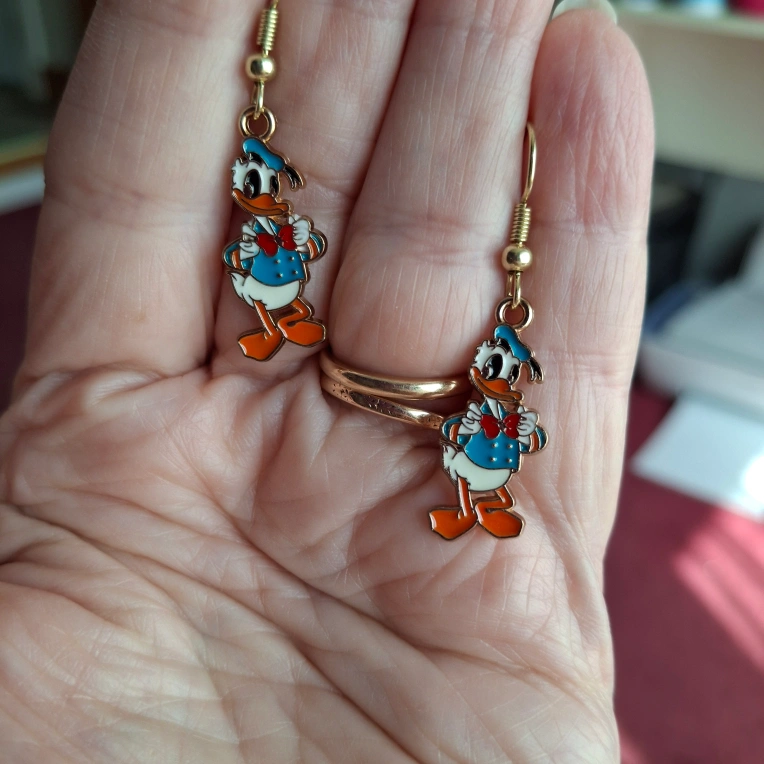 Super cute Donald Duck dangle earrings! These are perfect for any Disney fan or anyone who loves a bit of whimsy in their accessories.