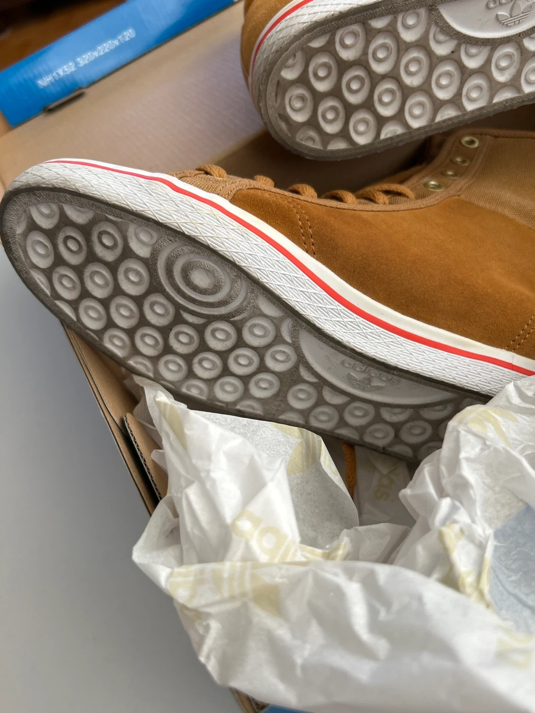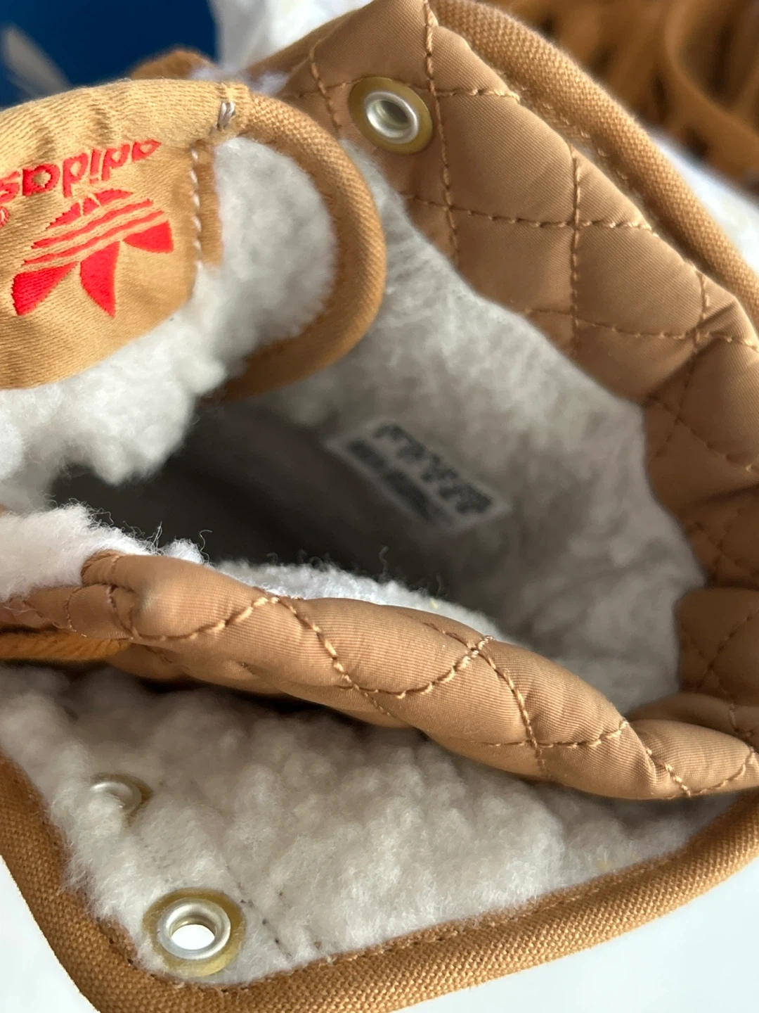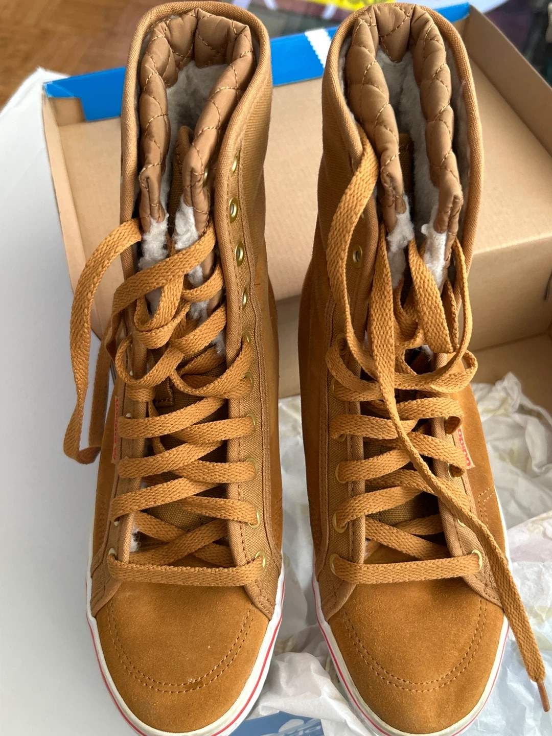 Used - Adidas Honey Hi Collegiate W shoes in a lovely tan colour! They have a unique quilted design and cozy lining. These high-cut shoes are in excellent condition and looks newer but they are obviously used already. Please check out all the photos provided. Smoke/Pet free home. Cash & Pick Up only.
