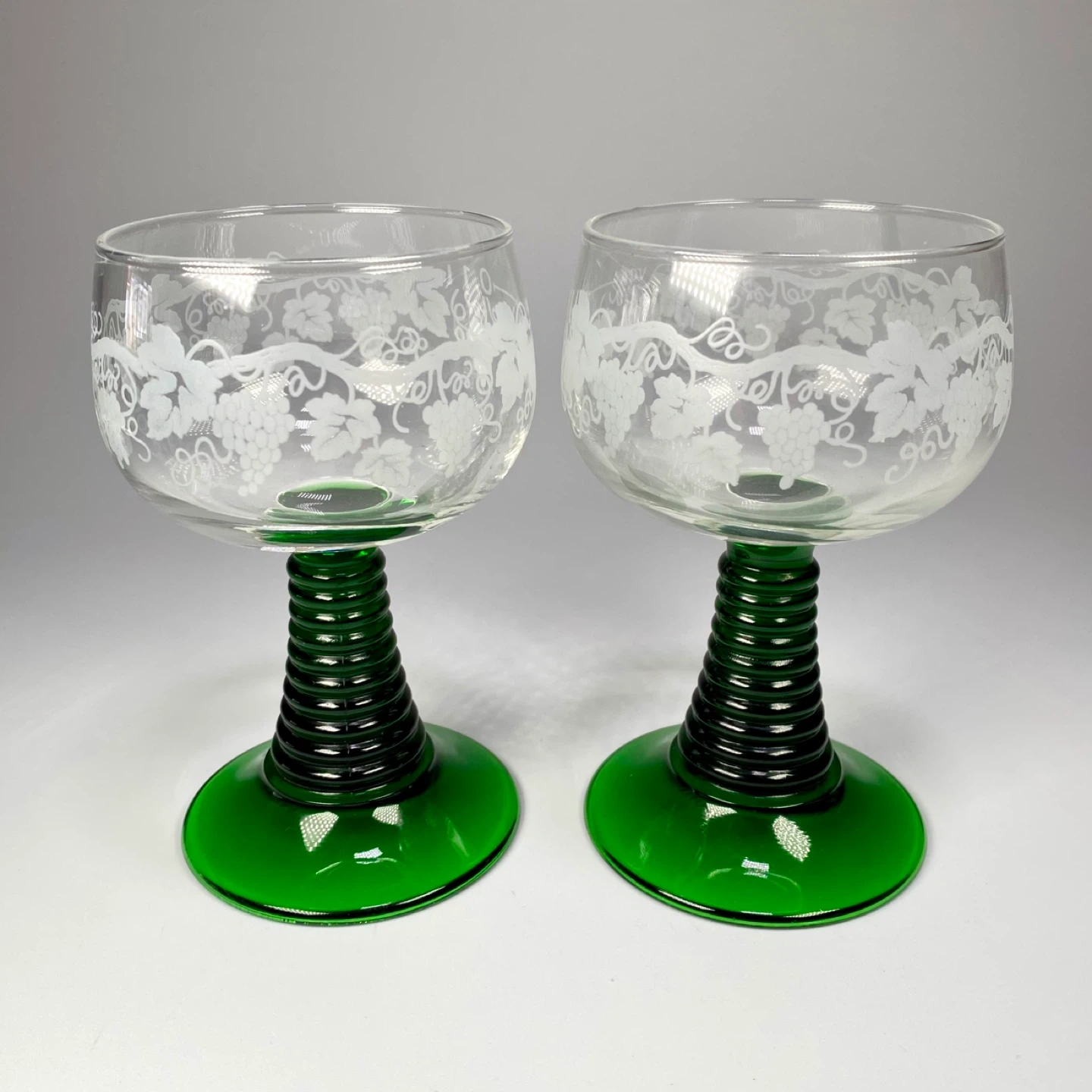 Pair of vintage etched emerald green Luminarc France beehive stem Rhein Roemer wine glasses. ~4.5โh ๐ฅ$12/pair โ Yes, it is available ๐ Pick up near Bloor & Ossington ๐ Downtown delivery extra ๐ฆ Ask about shipping