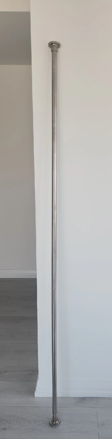 Adjustable curtain rod for shower/living room/bedroom/closet. It's waterproof, not easy to rust and anti-slip. The colour is nickel and it is 19-89". I no longer need it for my space and can be disassembled easily.