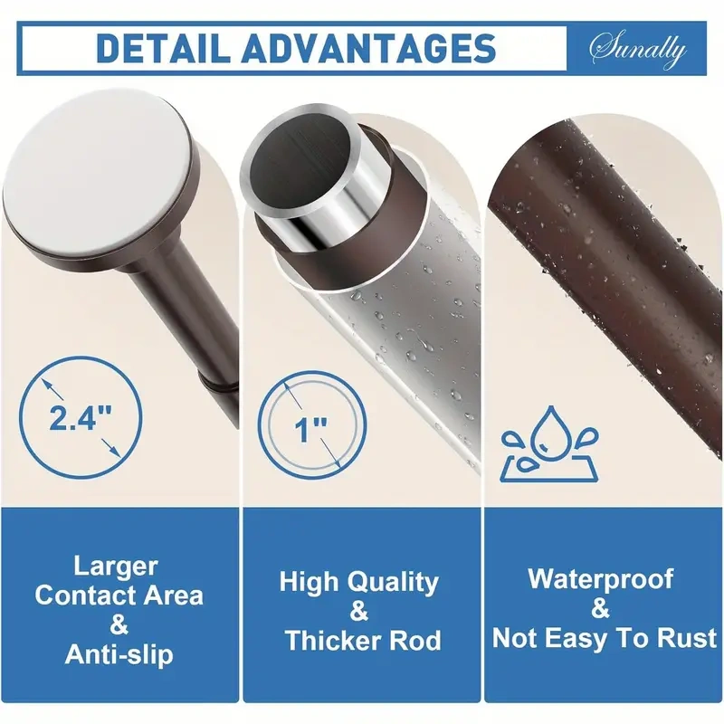 Adjustable curtain rod for shower/living room/bedroom/closet. It's waterproof, not easy to rust and anti-slip. The colour is nickel and it is 19-89". I no longer need it for my space and can be disassembled easily.