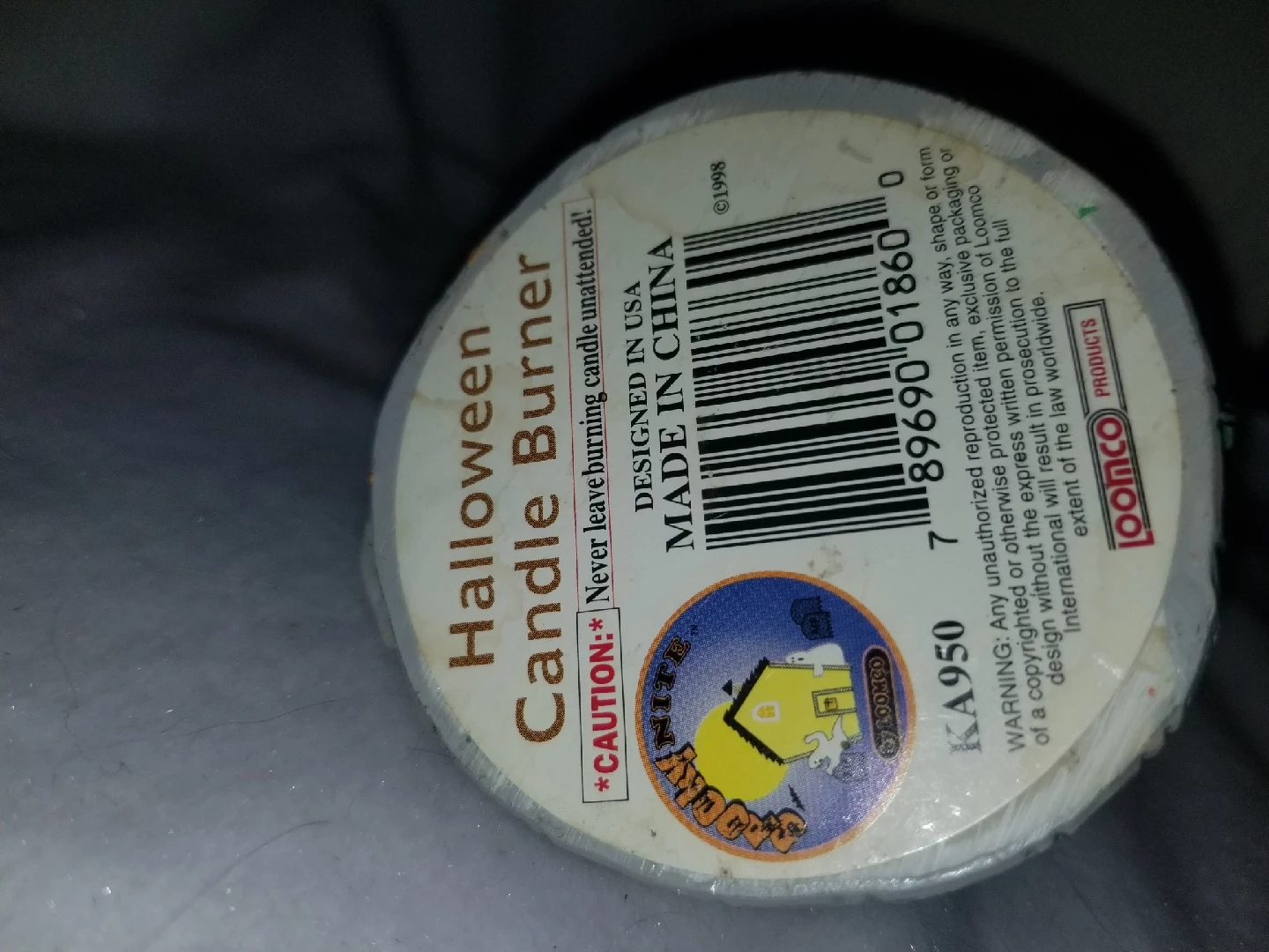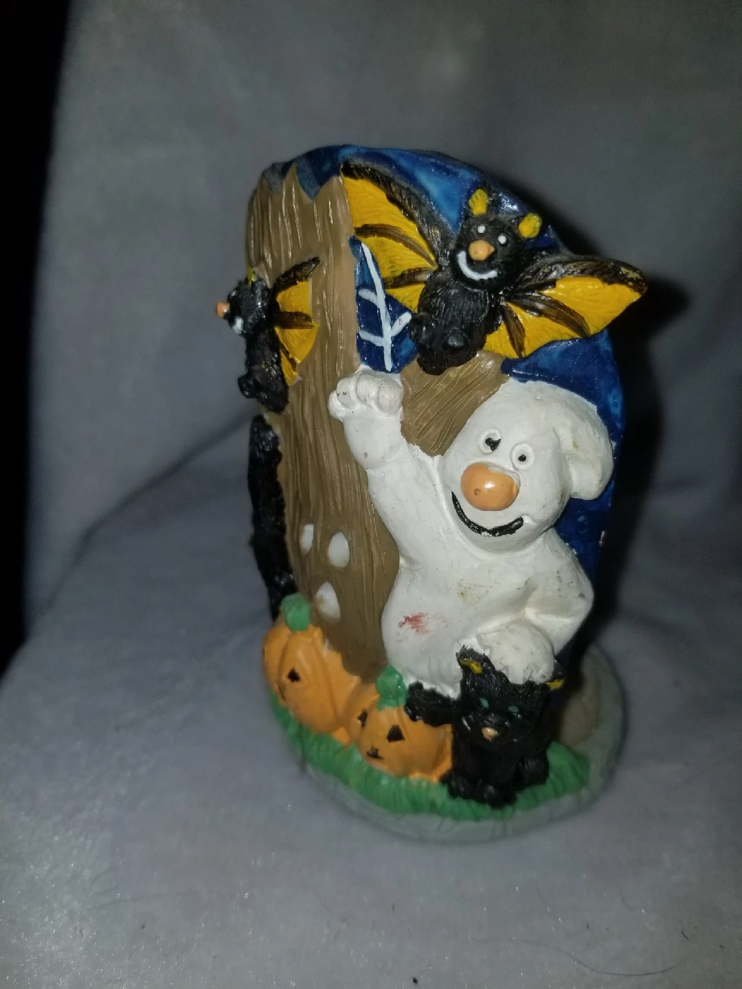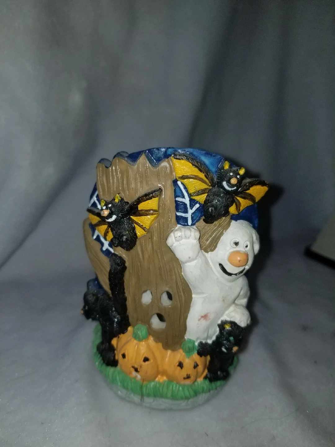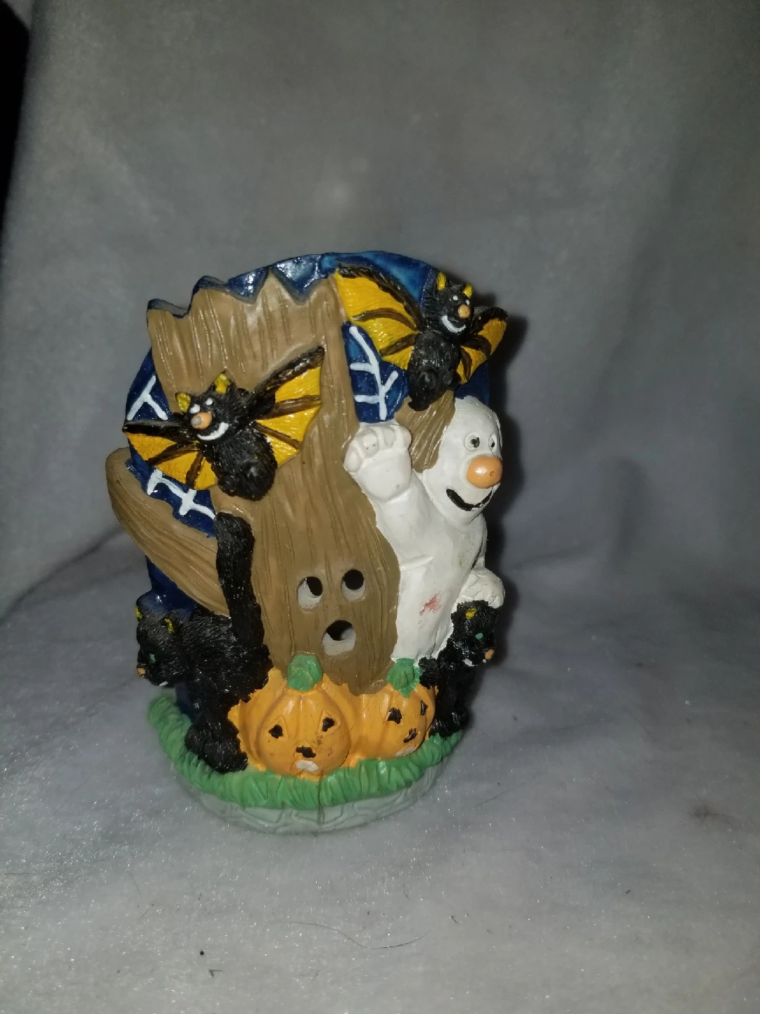 Halloween candle burner with a ghost, bats, and pumpkins. It's in great condition and ready to add some spooky fun to your home