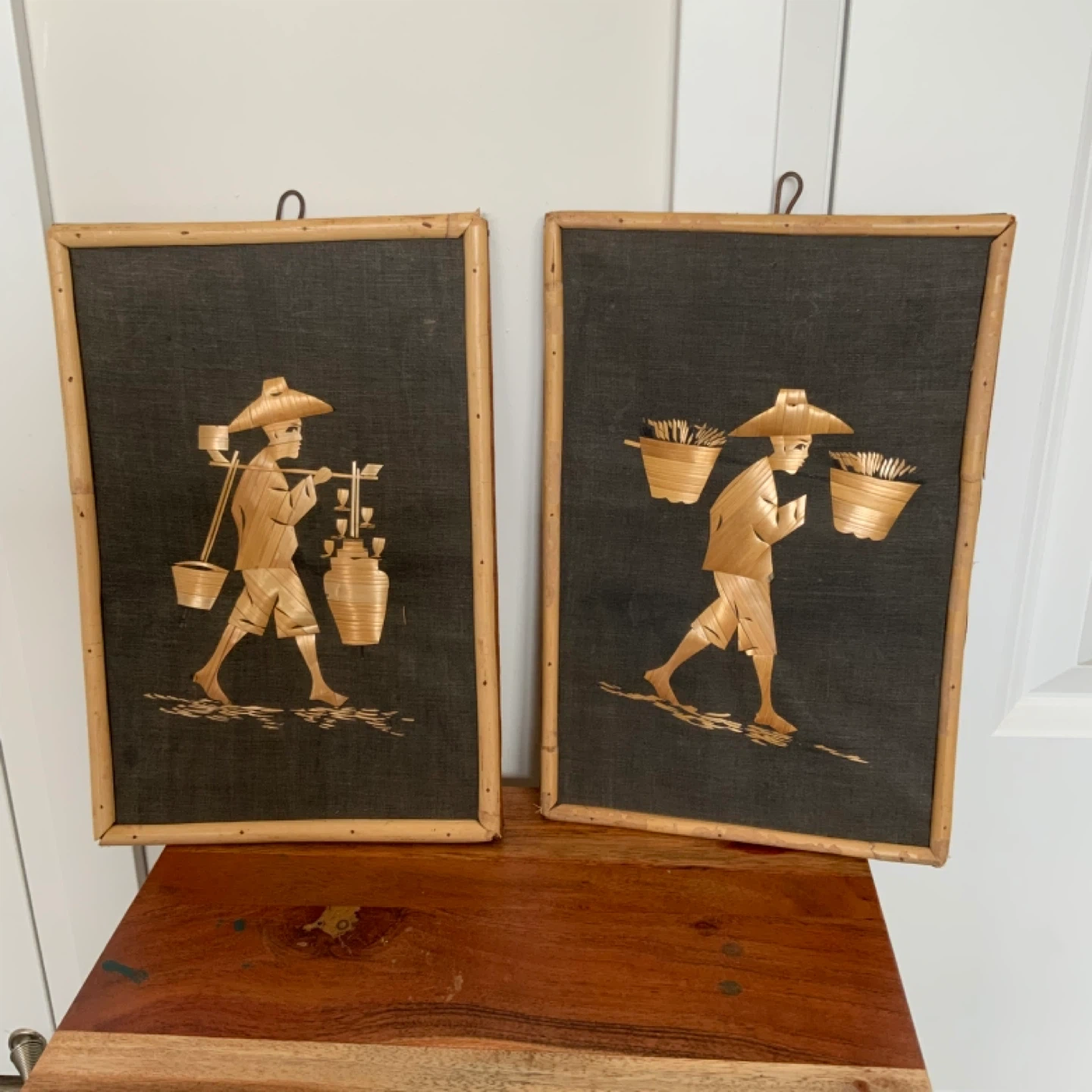 Selling a pair of framed straw art pieces with Asian themes. They each measure approximately 12 inches in height. These unique pieces would add a touch of rustic charm to any room! Price is for both pieces. Pick up near Woodbine and Danforth.