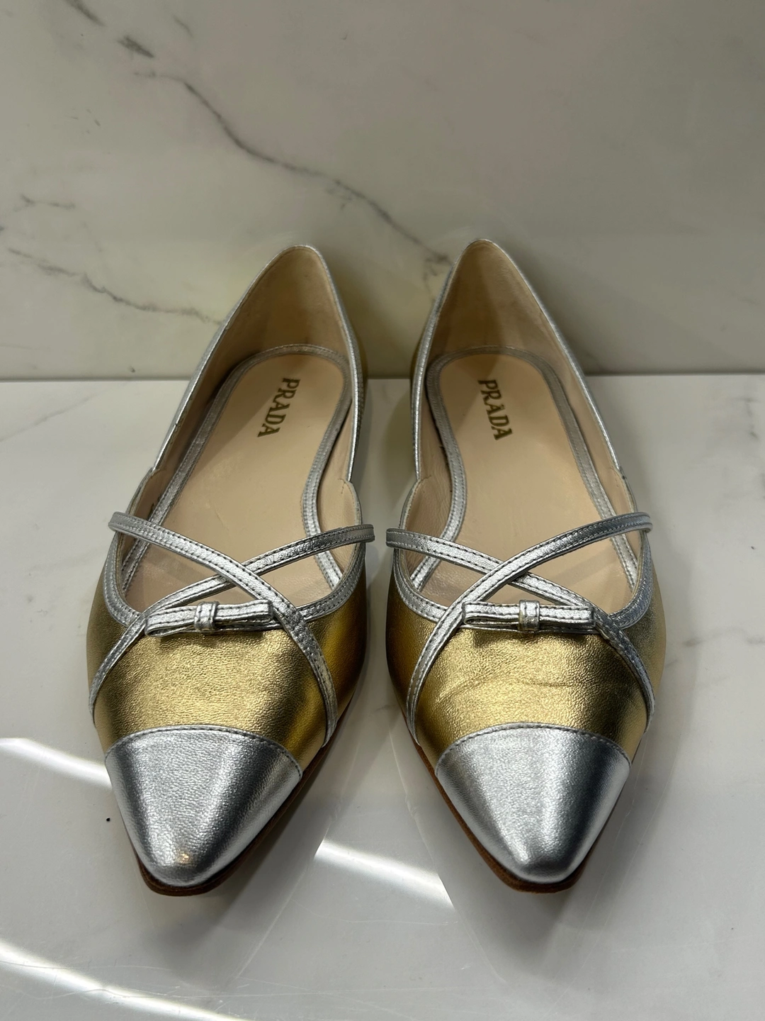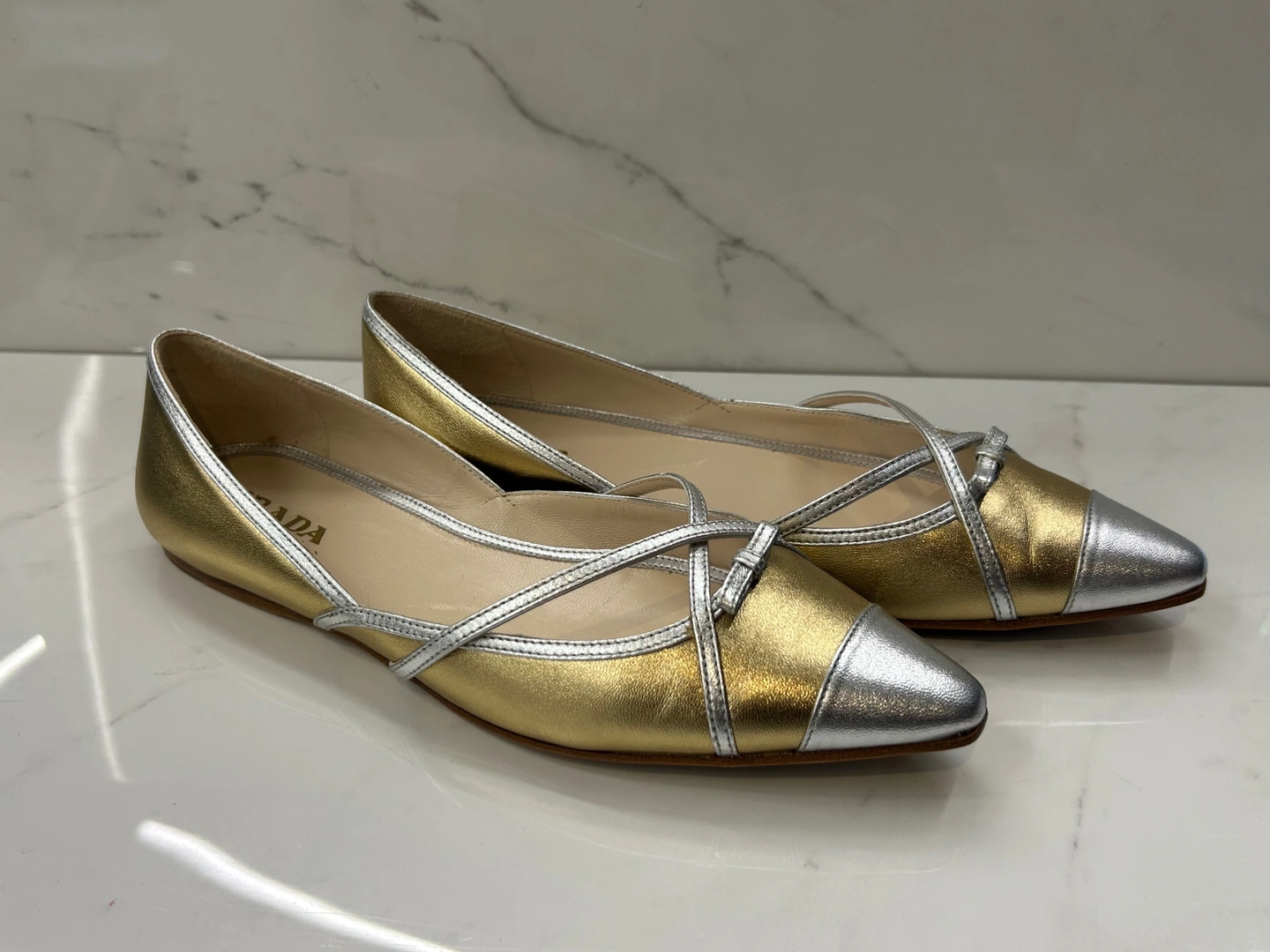 Prada Leather Printed D'Orsay Ballet Flats - Size 8.5 Comes as seen in photos $240 (before taxes) Available at 4 Seasons Pawn Shop & Gold Buyer Newton Location at 7155 King George Blvd, Surrey, BC, Canada Store Hours: Monday – Saturday: 9:30 AM – 6:00 PM Sunday: 11:00 AM – 6:00 PM We accept multiple forms of payment including cash, e transfer, debit, visa, Mastercard, American Express, certified bank. Layaway Plan Available! Ask us about our interest-free layaway options, perfect for budgeting your purchase. Call us at 6O4-592-O223 for more information, or visit us in store. Thank you for your interest we look forward to helping you find your next great deal! #1010085