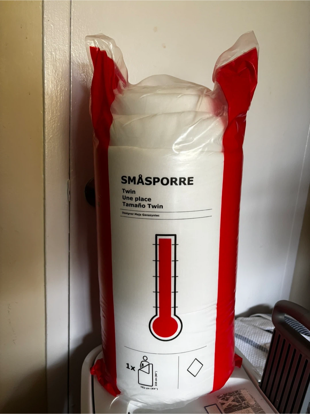 Selling a brand new IKEA SMÅSPORRE duvet in twin size! It's still in the original packaging and ready to keep you cozy. The dimensions are 162 cm (64") x 218 cm (86") Brand new. EXTRA WARM. Pick up don mills & sheppard