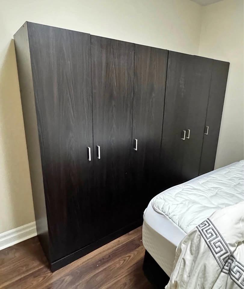 Brand New in Box. Multiple Available. In the pictures there are 2 x 3 Door Wardrobe. 3 Door Wardrobe Price: $199 (Pickup) EXPRESSO OAK FINISH Dimensions: 46 3/8" W X 19 1/4" D, 71 5/8" H This 3 Door Wardrobe lets you add extra storage space to almost any room in your home. Behind its three large doors, this wardrobe armoire features a hidden storage area that provides you with room for all your things. It includes a garment rod to conveniently hang and organize apparel like blouses, slacks, and your favourite dresses. Finished in a classy Espresso colour, this stylish storage cabinet will have your home looking tidy in no time.