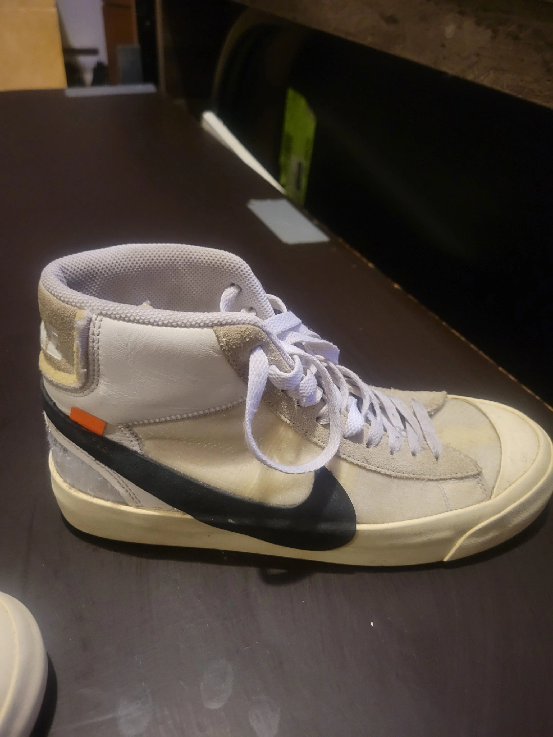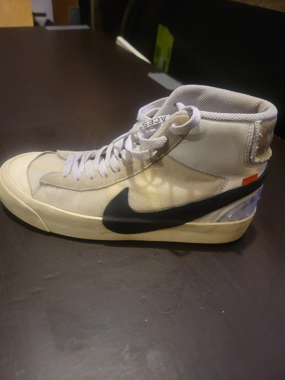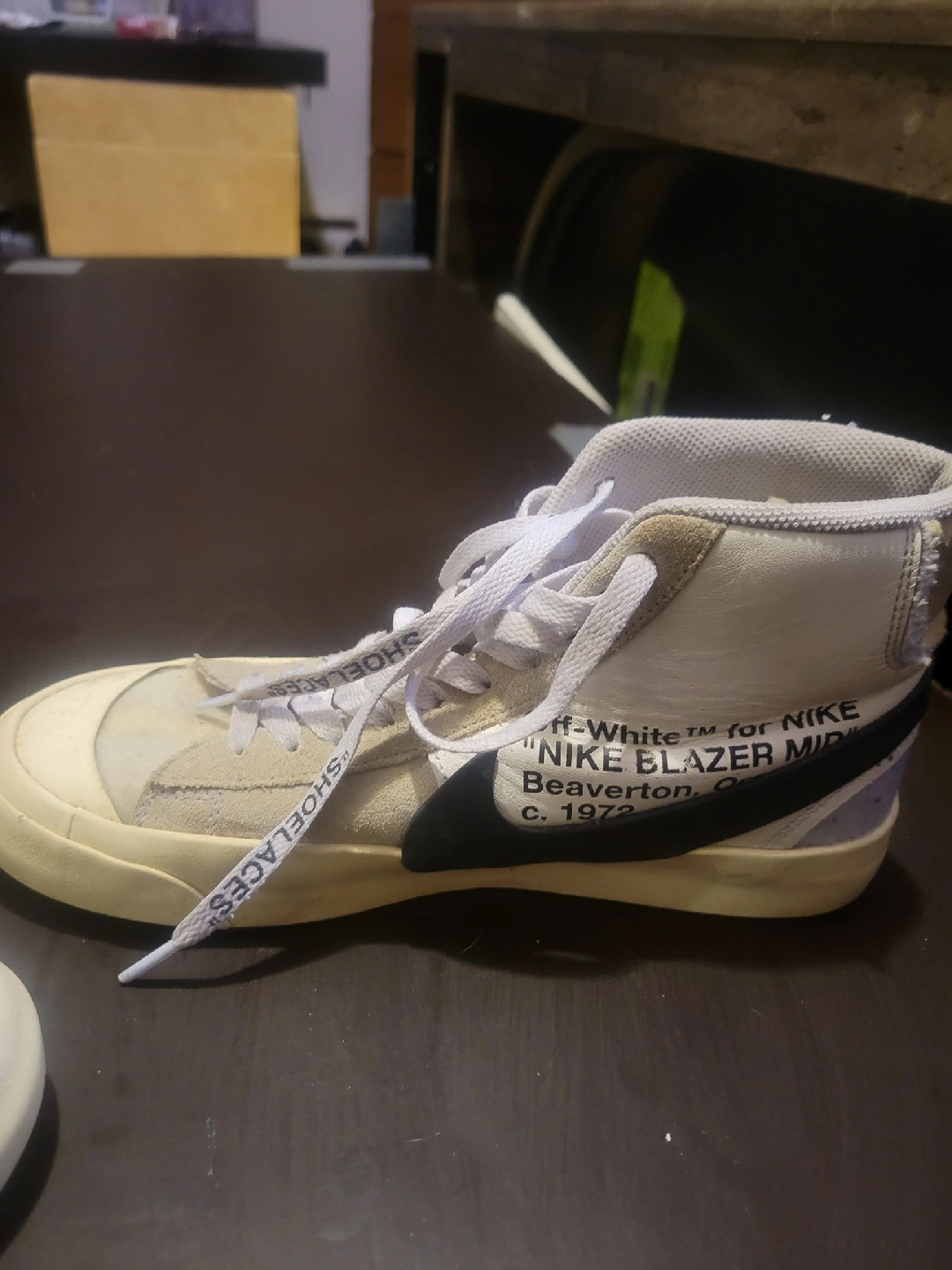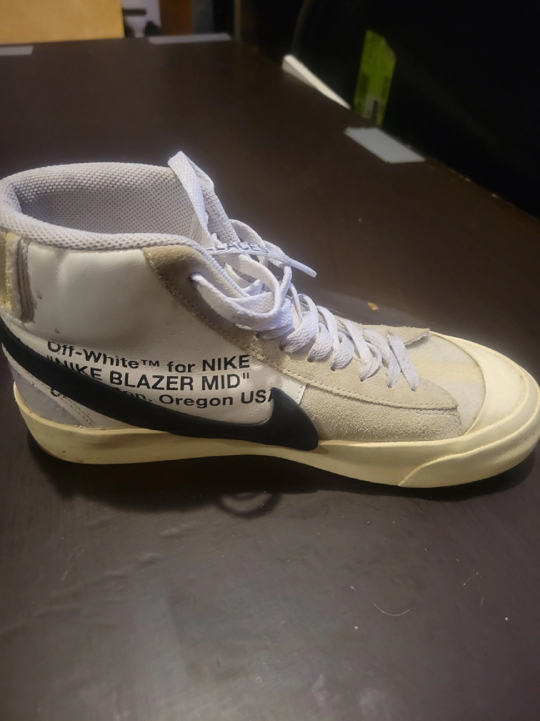 Selling a pair of Nike Blazer Mid Off-White sneakers. this is a collaboration between Nike & OffWhite. Anyone who knows anything about what shoes are worth will know what a.great deal these are. (look em up and see for yourself)