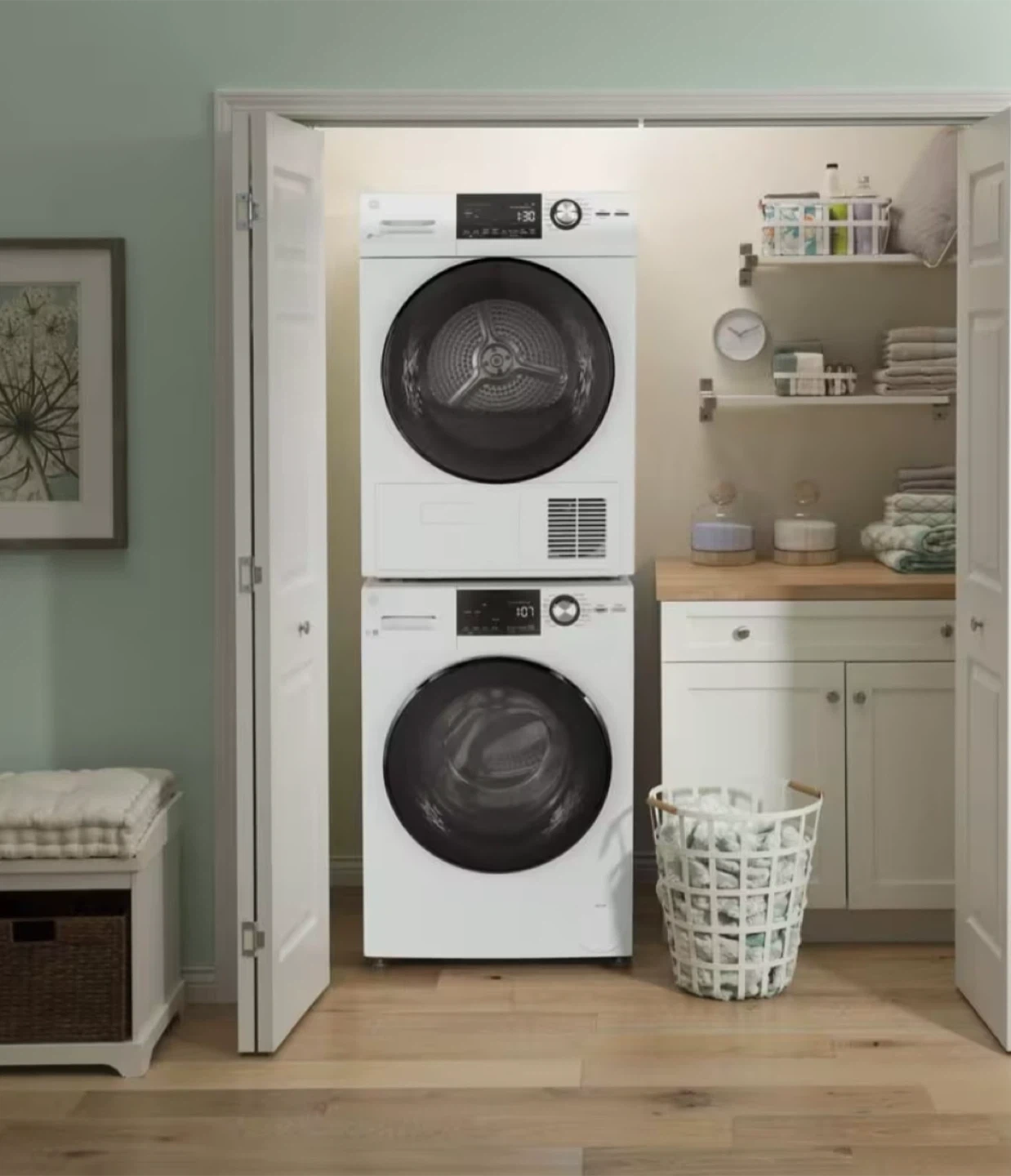 GE washer Model # GFW148SSMWW WASHER GE appliances provide up-to-date technology and exceptional quality. The stainless steel drum resists rust and the surface is gently smooth to help to protect your clothes 1400 RPM spin speed - Fast spin speeds remove water efficiently and minimize dry time 2.8 cu. ft. (IEC) stainless steel basket will ensure that the internal basket will not rust Stacking kit included Model # GFD14JSINWW DRYER GE appliances provide up-to-date technology and exceptional quality to simplify the way you live. With a timeless appearance, this family of appliances is ideal for your family. Low-heat setting helps protect heat-sensitive fabrics, like microfibre and rayon or nylon Stacking Kit GFA24KITL sold separately 4.1 cu. ft. stainless steel drum Delay Start - Manage your time and your energy - with our Delay Start feature you can maximize on 'peak time' energy. Pick up only
