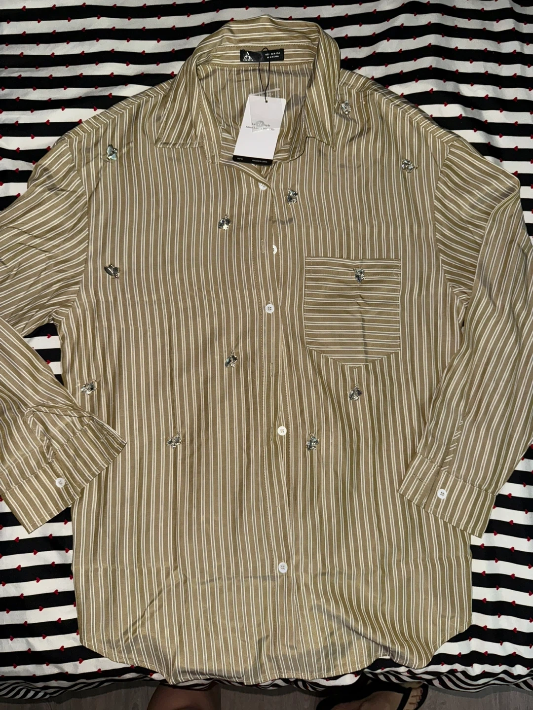 This is an Anewsta oversized striped shirt with diamond decor. It's a loose office shirt, perfect for a casual yet stylish look. Originally bought for $42.89! Brand new with tags .