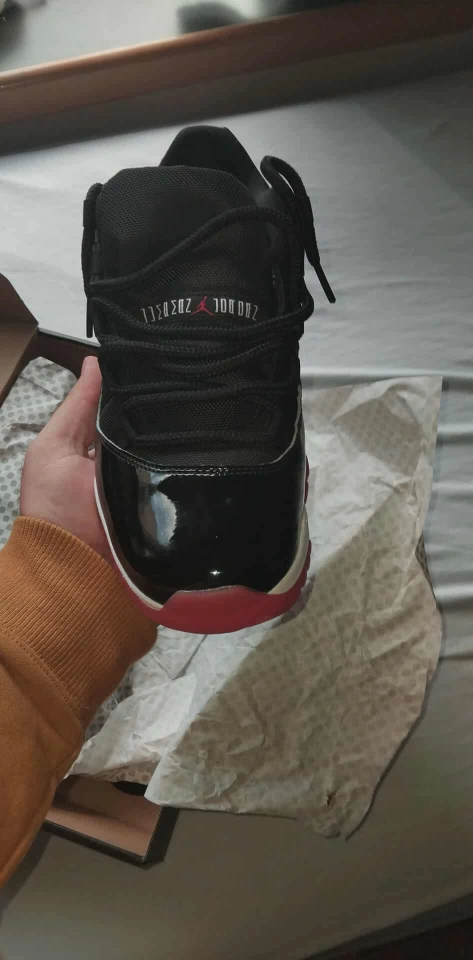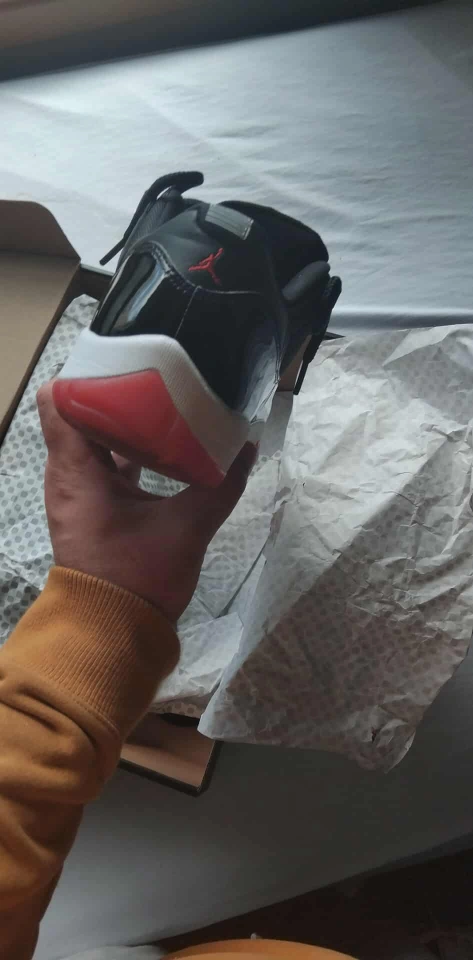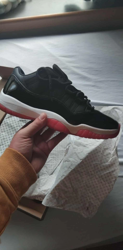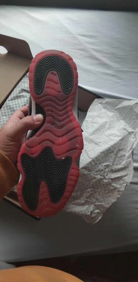 Up for grabs is a pair of Air Jordan 11 Retro Little Flex TD sneakers! The shoes are black and red and come with the original box. 100 percent real size 9.5