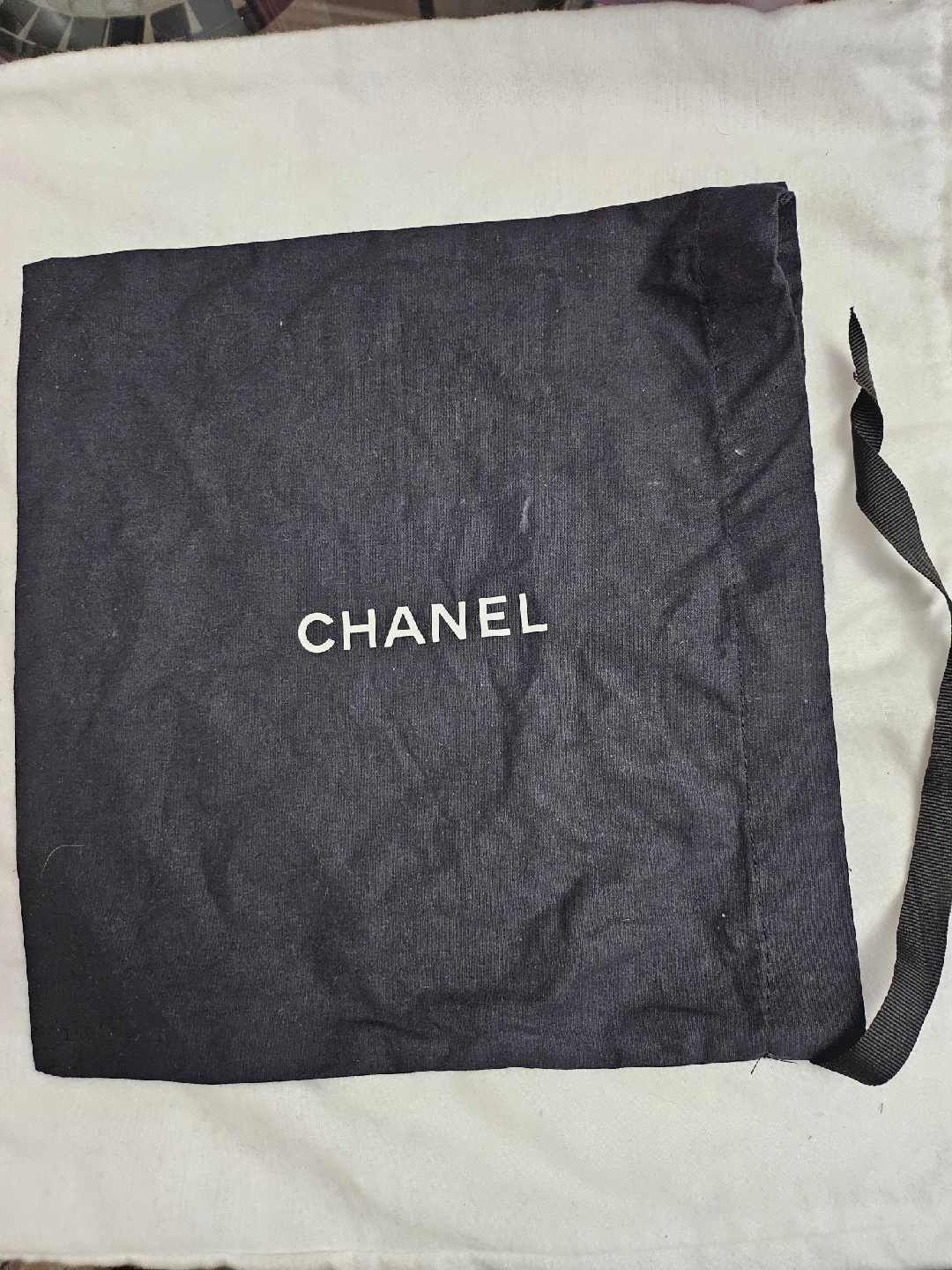 Selling Authentic Chanel dust bag with White Chanel Ribbon And Flannel It's in great condition and ready to protect your precious Chanel item! Perfect for storing your handbag or shoes
