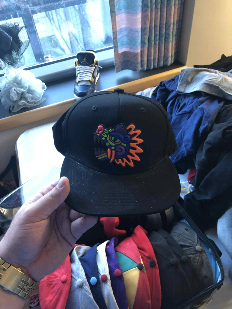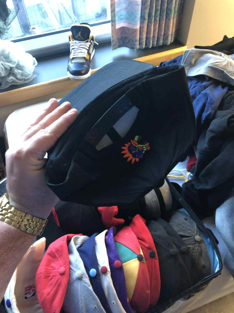 Selling a black hat featuring a cool, colourful design! It's in great shape and ready for a new home. Perfect for adding a pop of fun to any outfit!