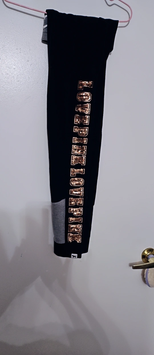 🖤💛Selling a pair of PINK Victoria's Secret leggings in black! They have a grey accent at the bottom and the word 'PINK' in gold on the side. They are in great condition and ready for a new home💛🖤