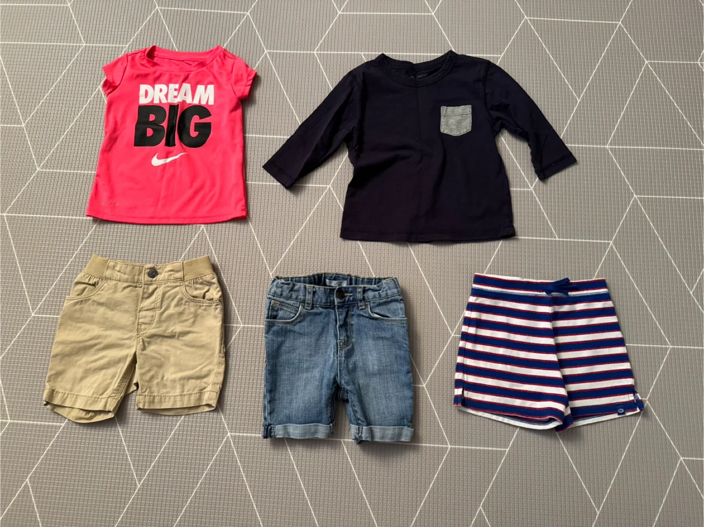 Selling a bundle of toddler shorts, size 2! Includes a pair of Joe brand denim shorts, khaki shorts, and striped shorts. All in good condition and ready for a new home Striped shorts 24 months