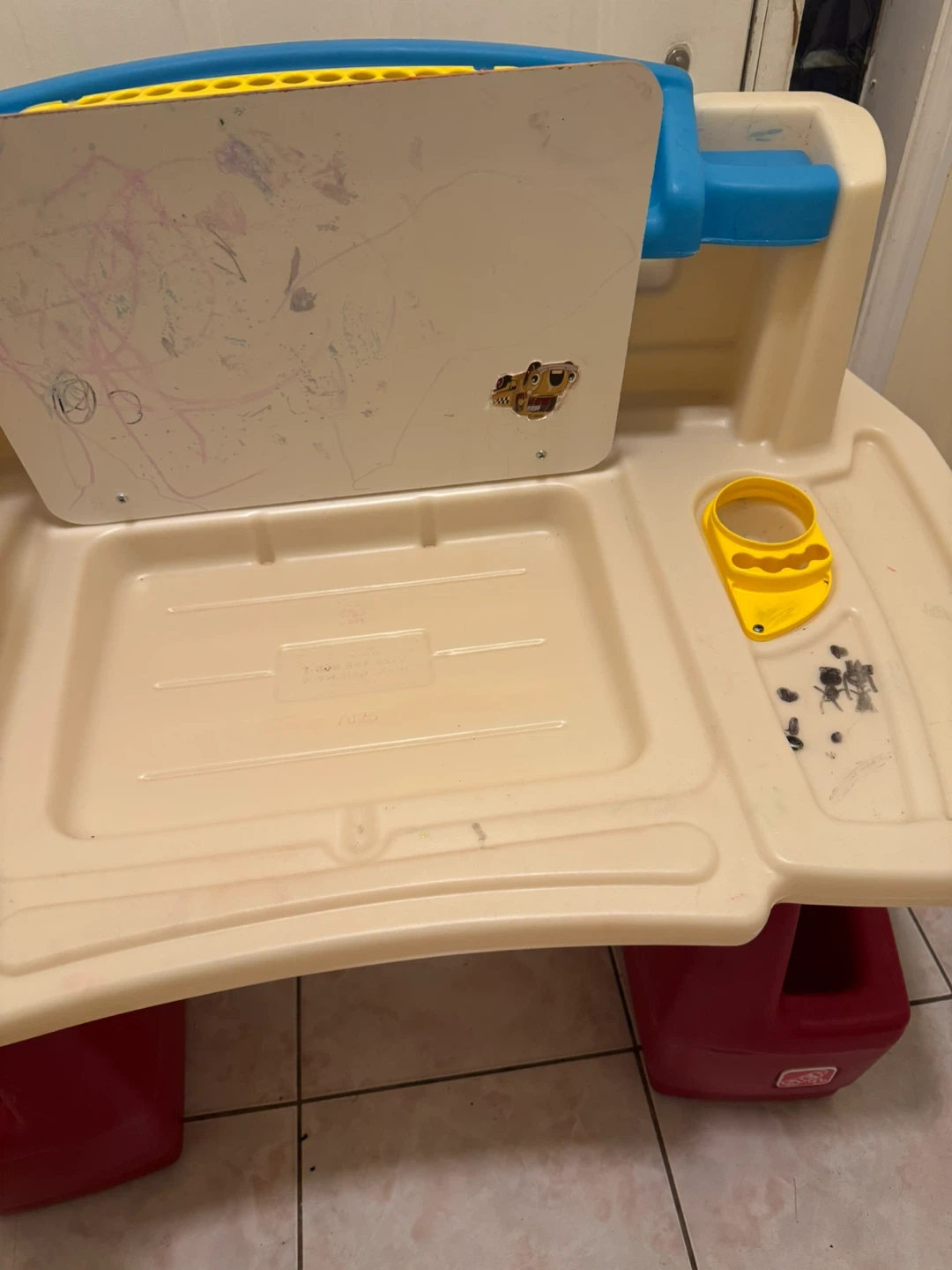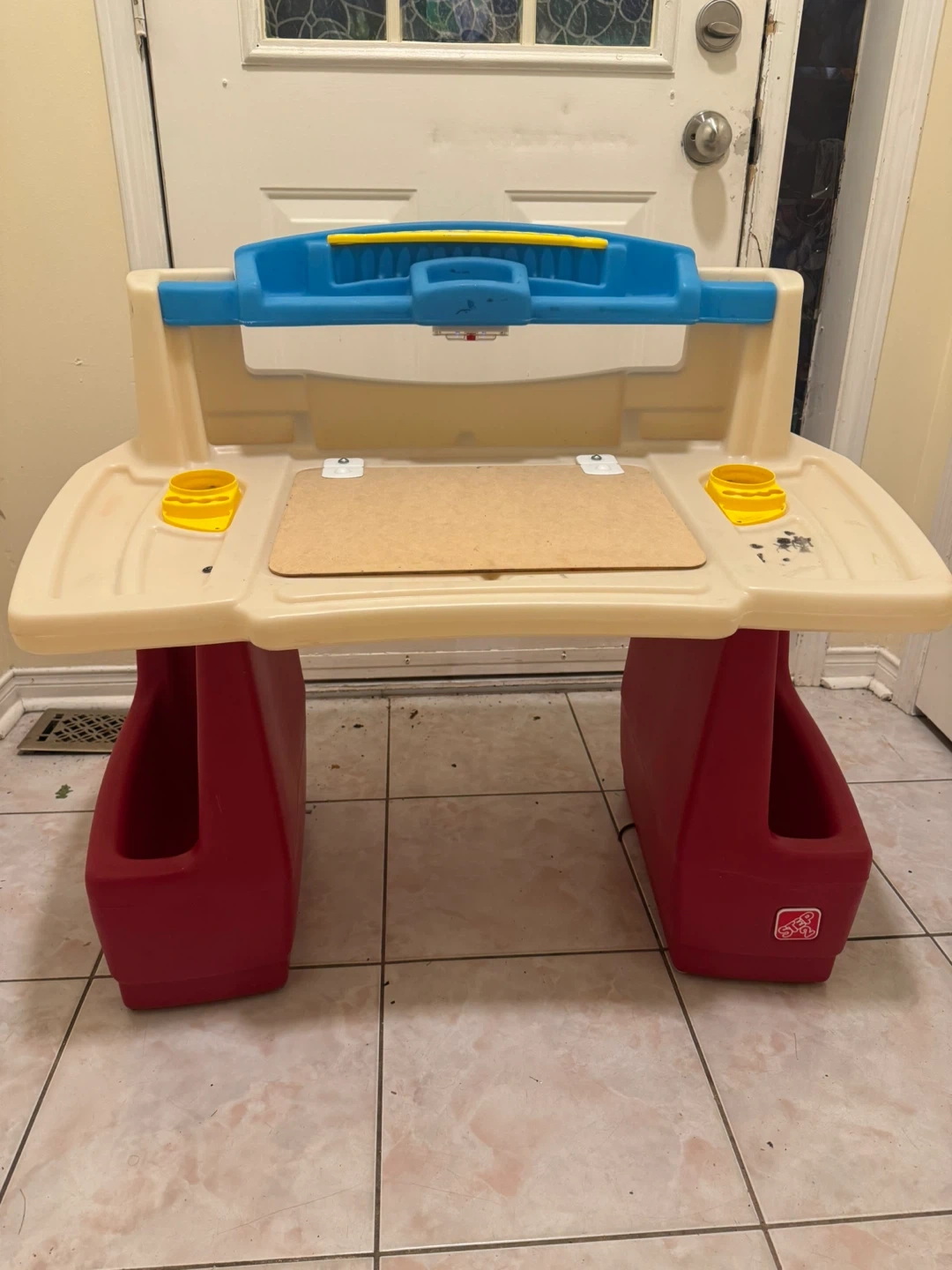 Step2 Easel for Two. This is a great desk for kids to draw and play on! It has a whiteboard on one side and a chalkboard on the other. There's also storage on the sides for art supplies