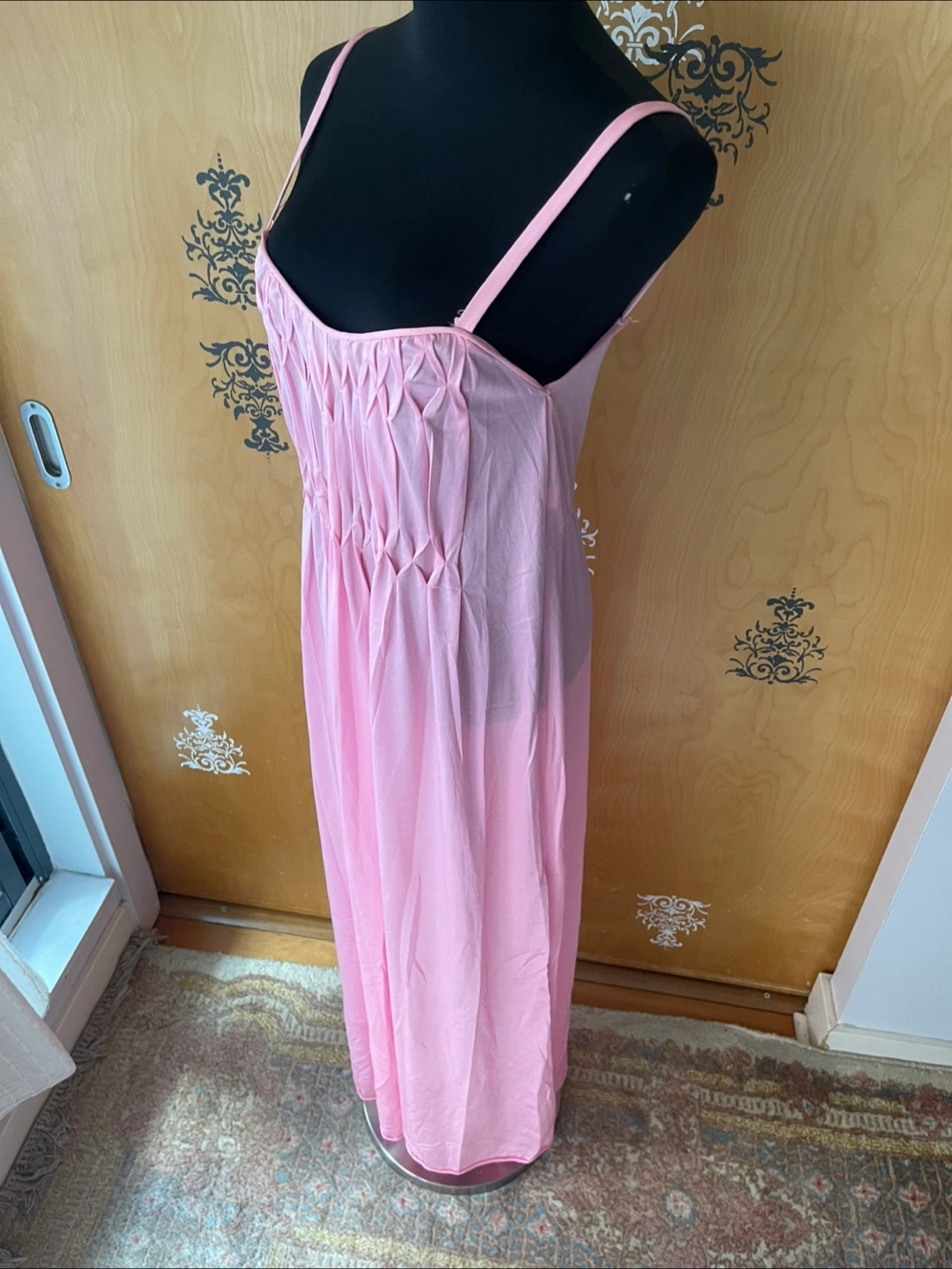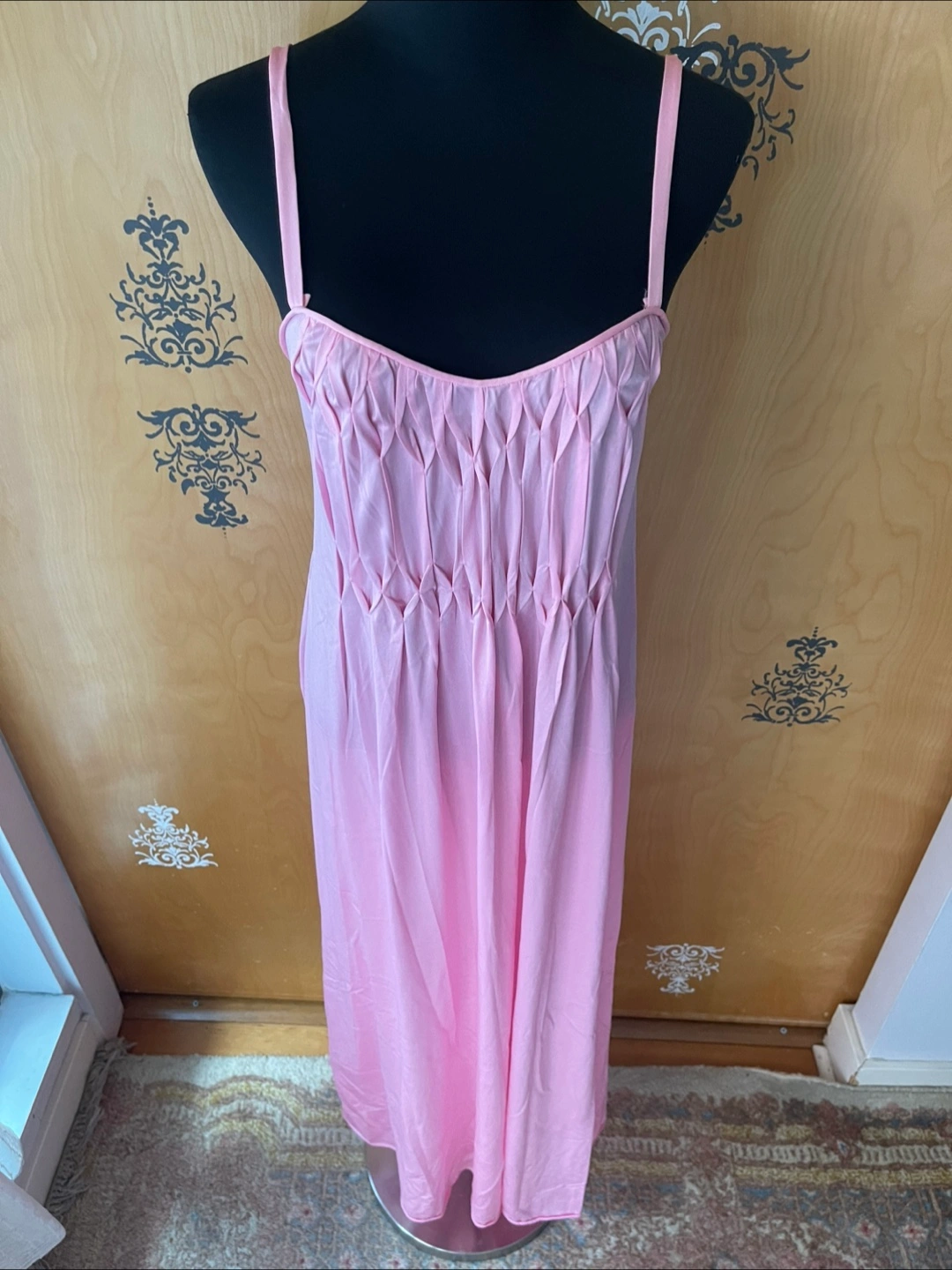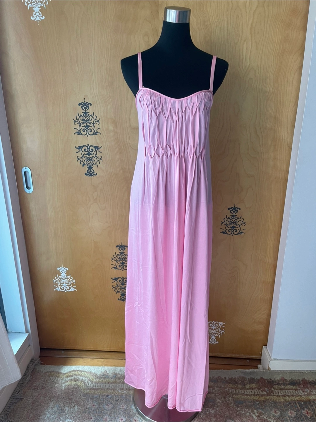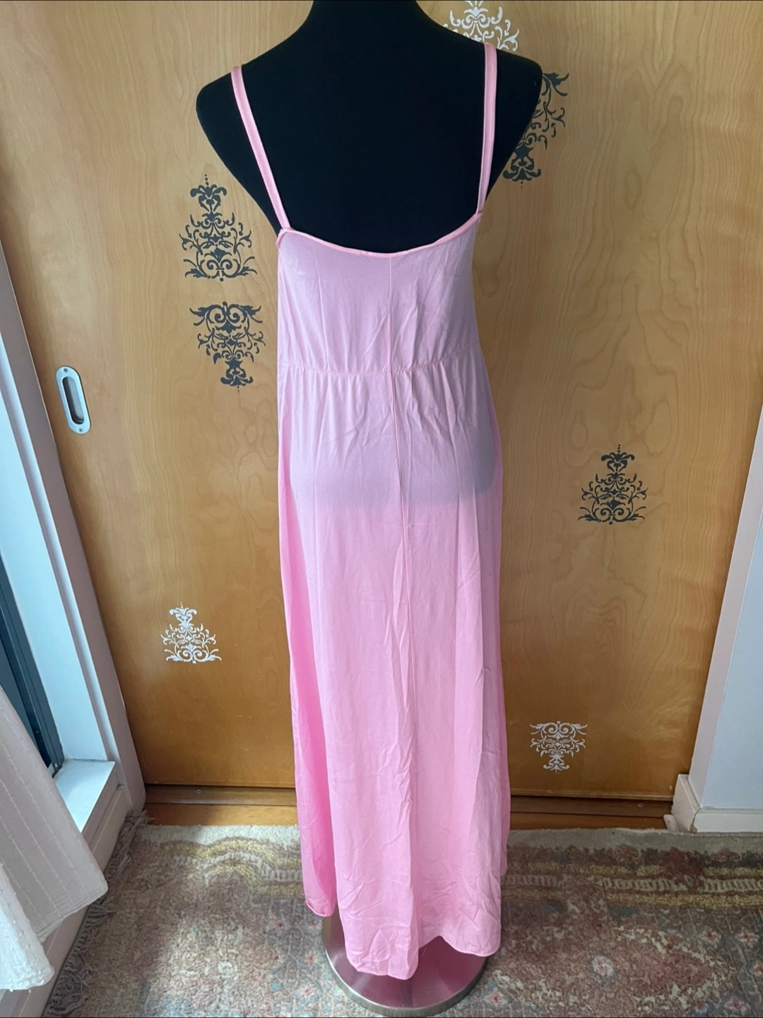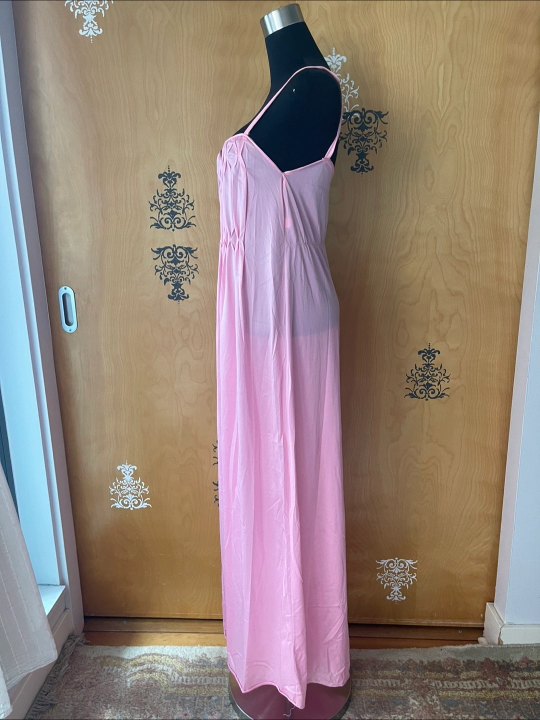 Rare Vintage 90s Pink Ruffle Details Long Slip Maxi Dress Spaghetti Straps S/M Condition:10/10! No rips, stains, or tears! 💎RARE FIND! ✅Authentic certified vintage ✅Made: USA Style Details: Vintage 90s Length: maxi Sweetheart neckline Slightly Opaque/Sheer Style: Slip dress Color: soft pink Lightweight, silky flowing fabric - hypoallergenic, organic & breathable - soft to skin Delicate straps - thick spaghetti straps Loose silhouette (meaning this dress skims the body) Variety Looks/Styles: Versatility & ability to be styled for various occasions Flattering drape & comfortable fit - straight line dress Minimalist, chic look Sleeveless Comfort & elegance Measurements (Inches): **Mannequin is overall size medium **Clothing measured on flat surface - ONLY LEFT TO RIGHT - NOT ALL AROUND CIRCUMFERENCE Tag Size: S/M Shoulder to shoulder: 11 Bust: 14 Waist: 15 Hips: 18 Armpit Width: 9 Length from shoulder to bottom hem: 52