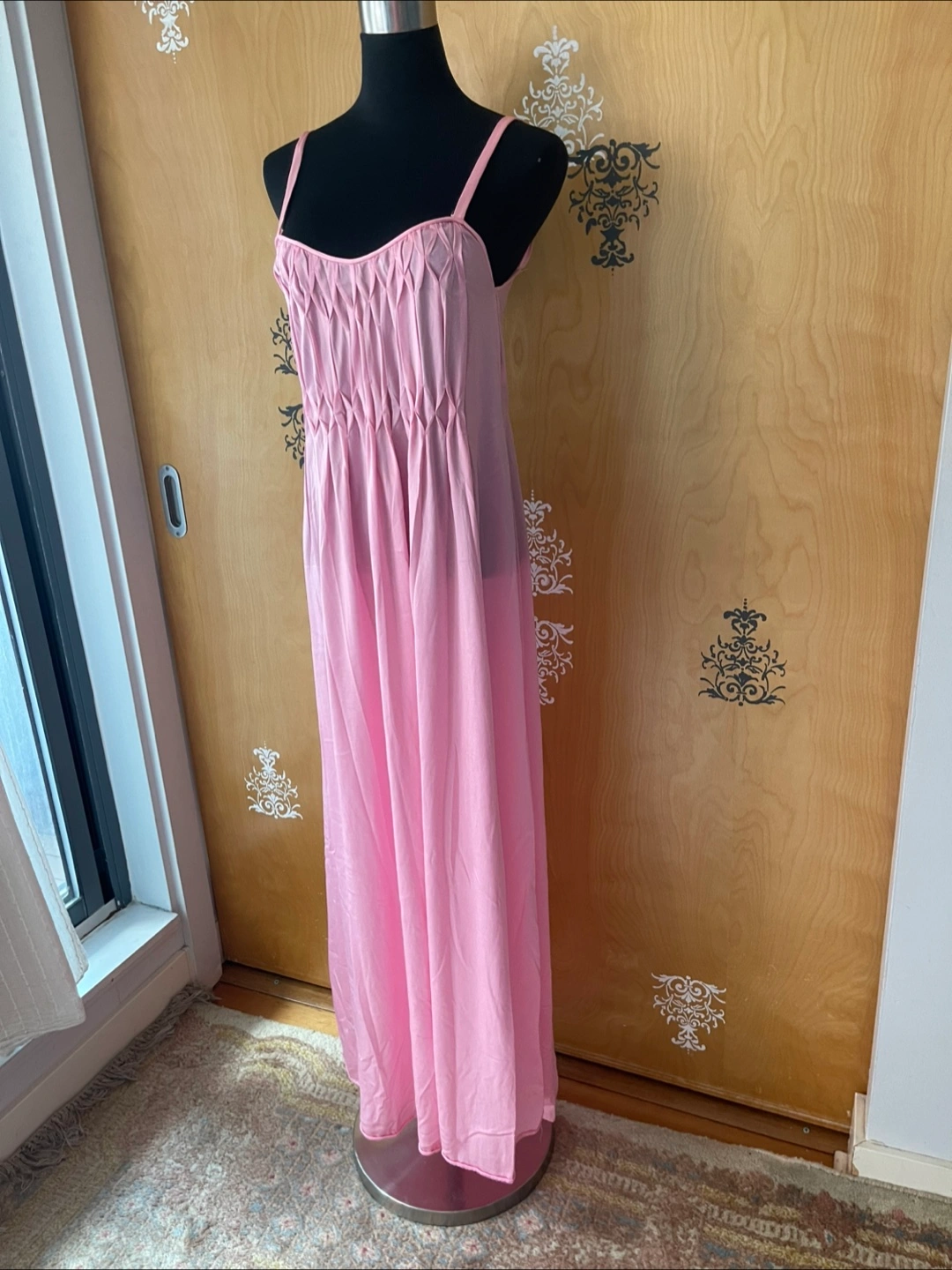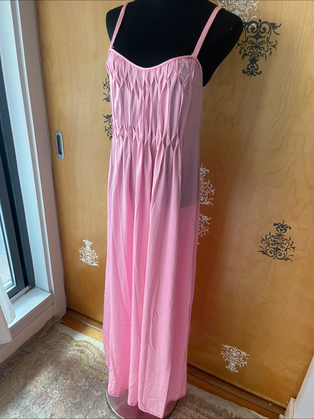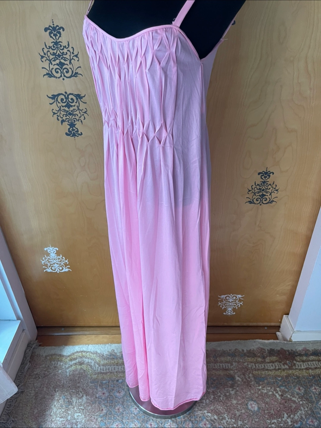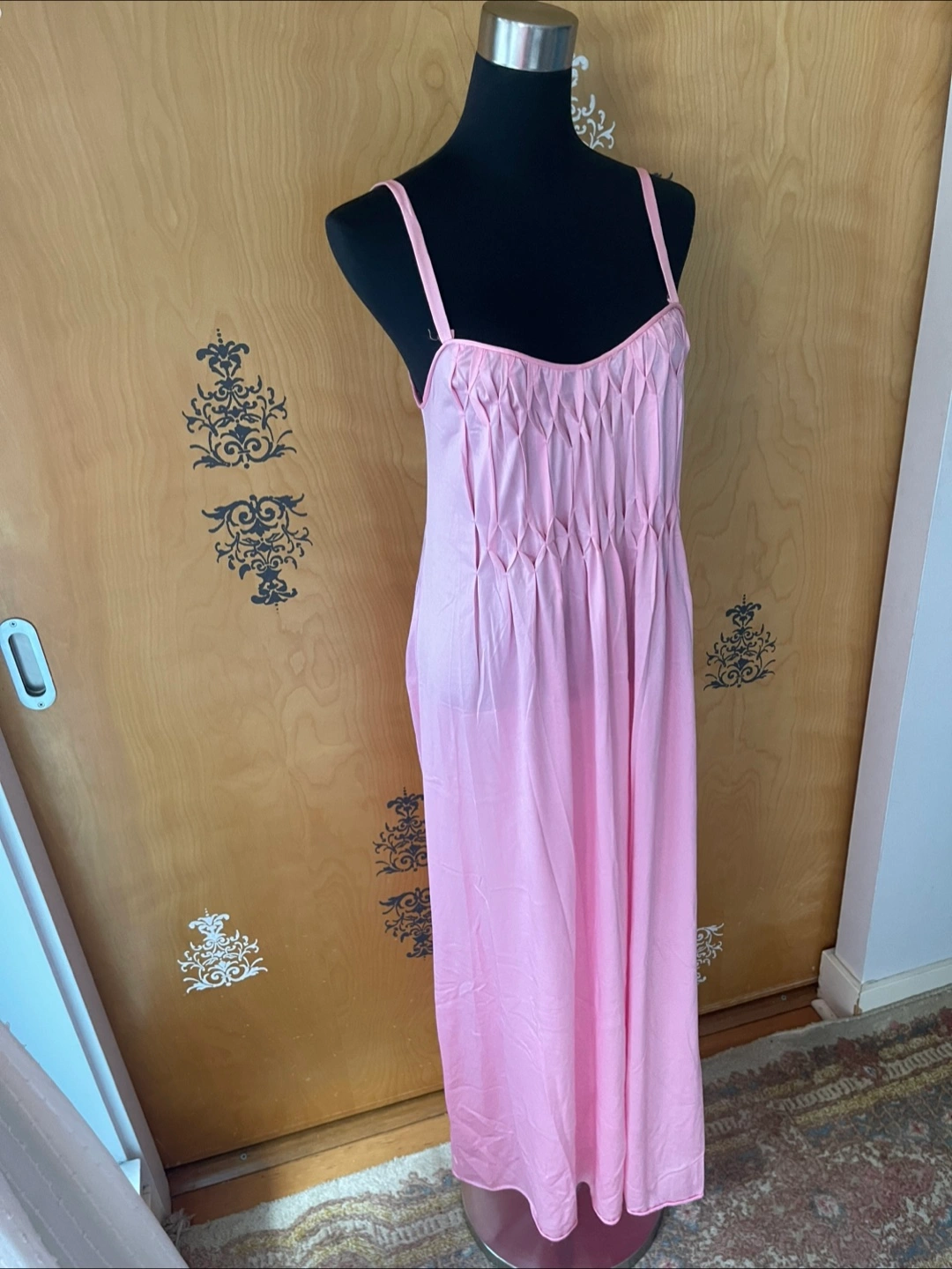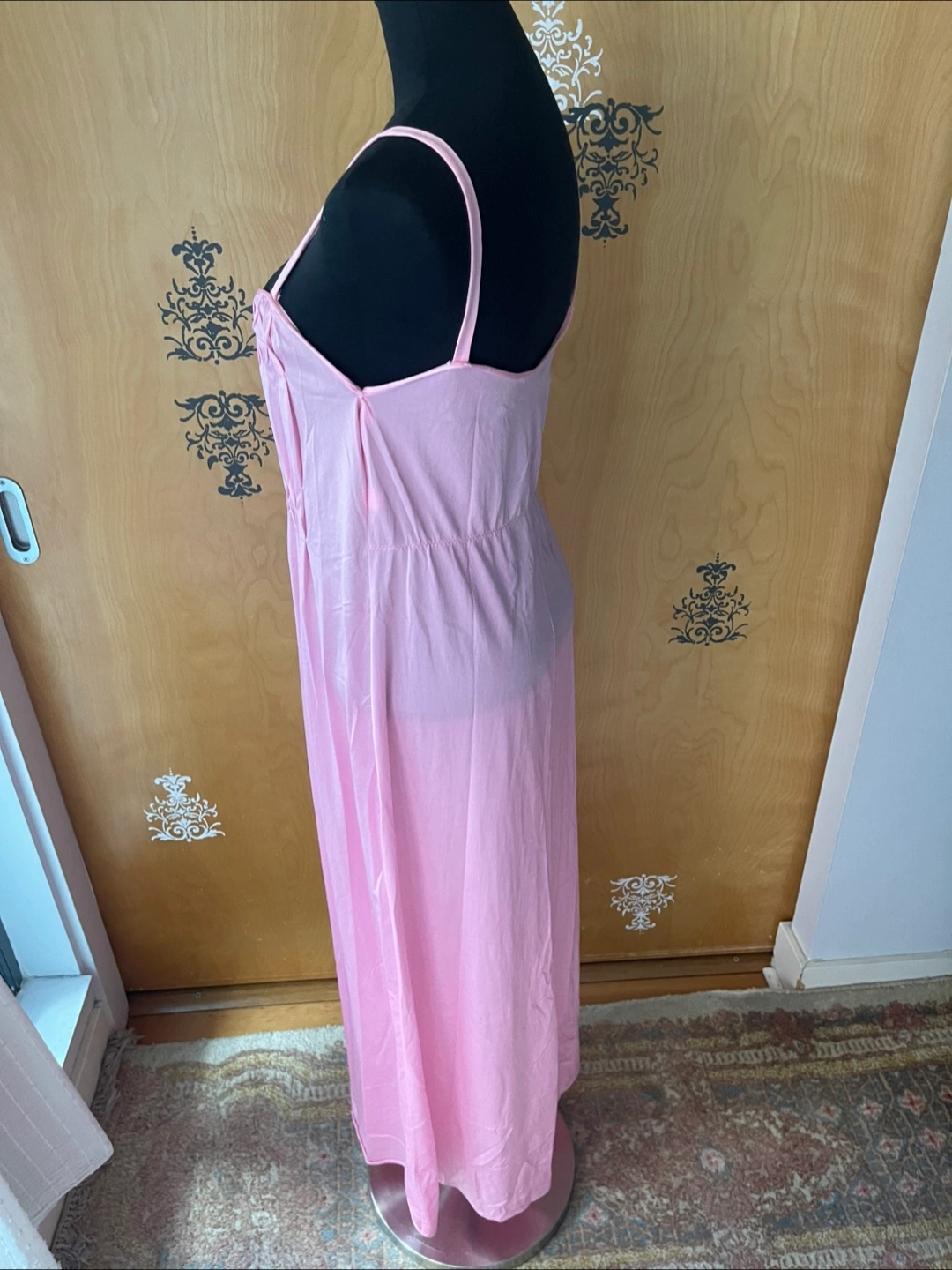 Rare Vintage 90s Pink Ruffle Details Long Slip Maxi Dress Spaghetti Straps S/M Condition:10/10! No rips, stains, or tears! 💎RARE FIND! ✅Authentic certified vintage ✅Made: USA Style Details: Vintage 90s Length: maxi Sweetheart neckline Slightly Opaque/Sheer Style: Slip dress Color: soft pink Lightweight, silky flowing fabric - hypoallergenic, organic & breathable - soft to skin Delicate straps - thick spaghetti straps Loose silhouette (meaning this dress skims the body) Variety Looks/Styles: Versatility & ability to be styled for various occasions Flattering drape & comfortable fit - straight line dress Minimalist, chic look Sleeveless Comfort & elegance Measurements (Inches): **Mannequin is overall size medium **Clothing measured on flat surface - ONLY LEFT TO RIGHT - NOT ALL AROUND CIRCUMFERENCE Tag Size: S/M Shoulder to shoulder: 11 Bust: 14 Waist: 15 Hips: 18 Armpit Width: 9 Length from shoulder to bottom hem: 52