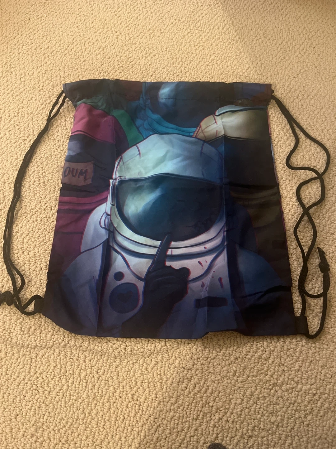 Selling a drawstring bag with an Among Us astronaut design! It's in great condition and perfect for carrying books or gym clothes