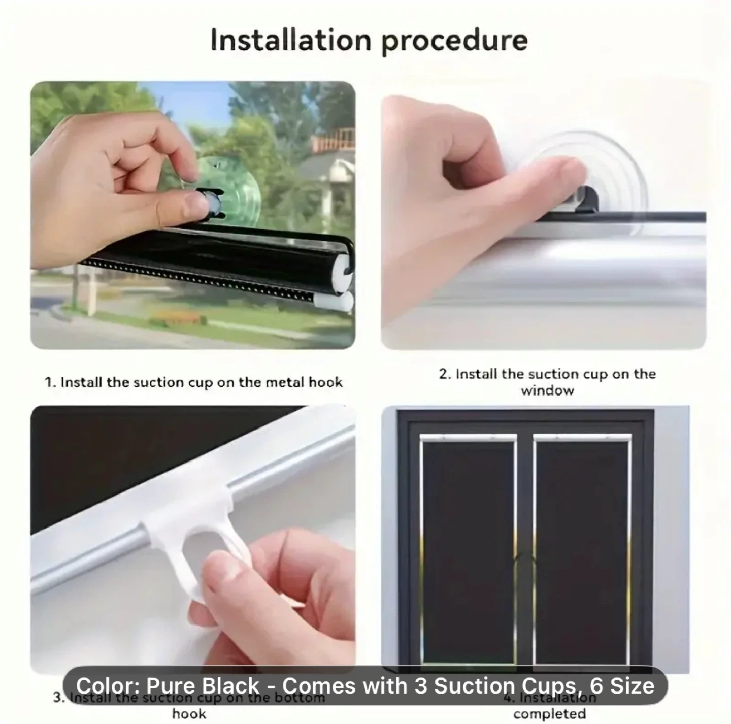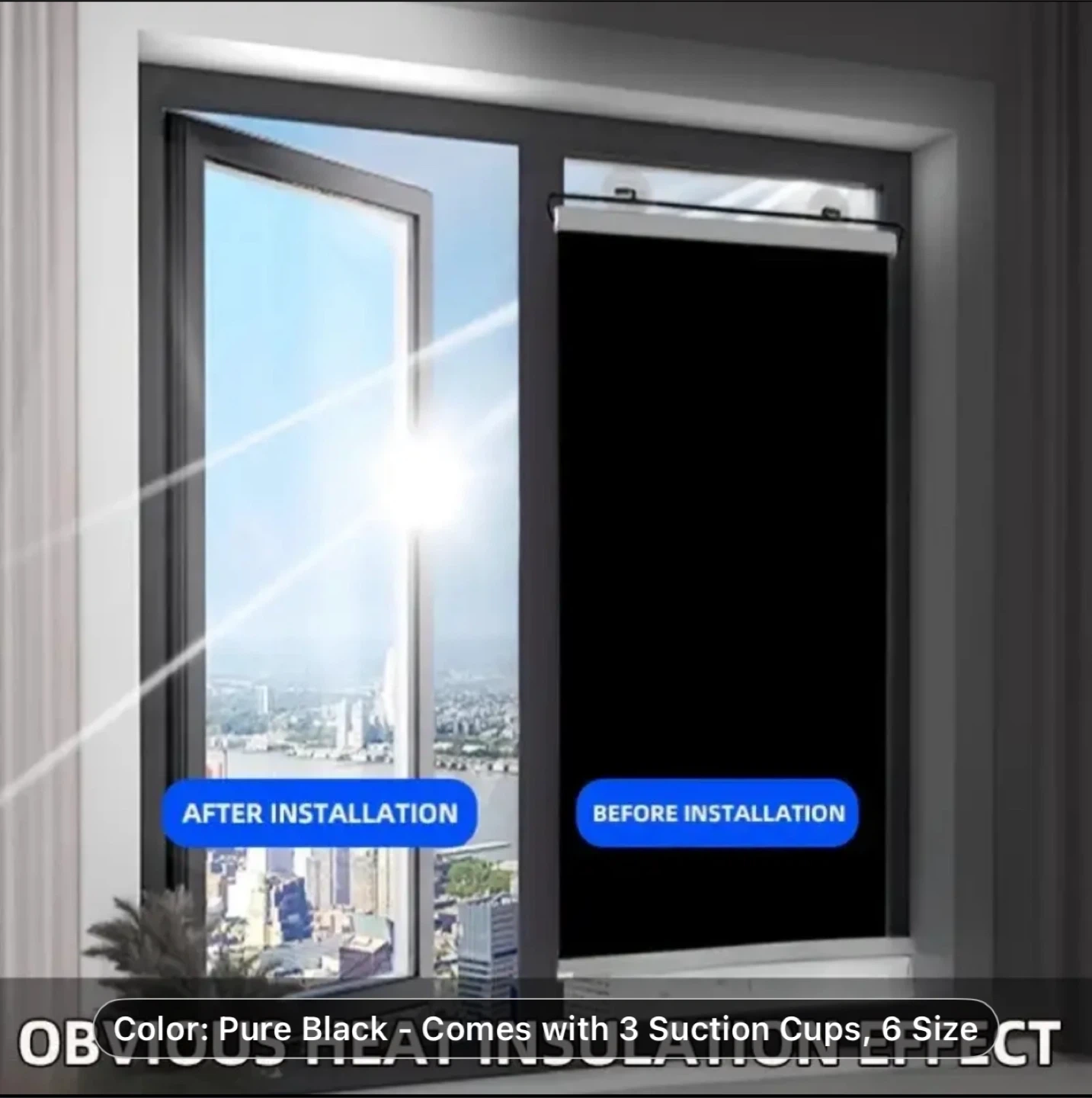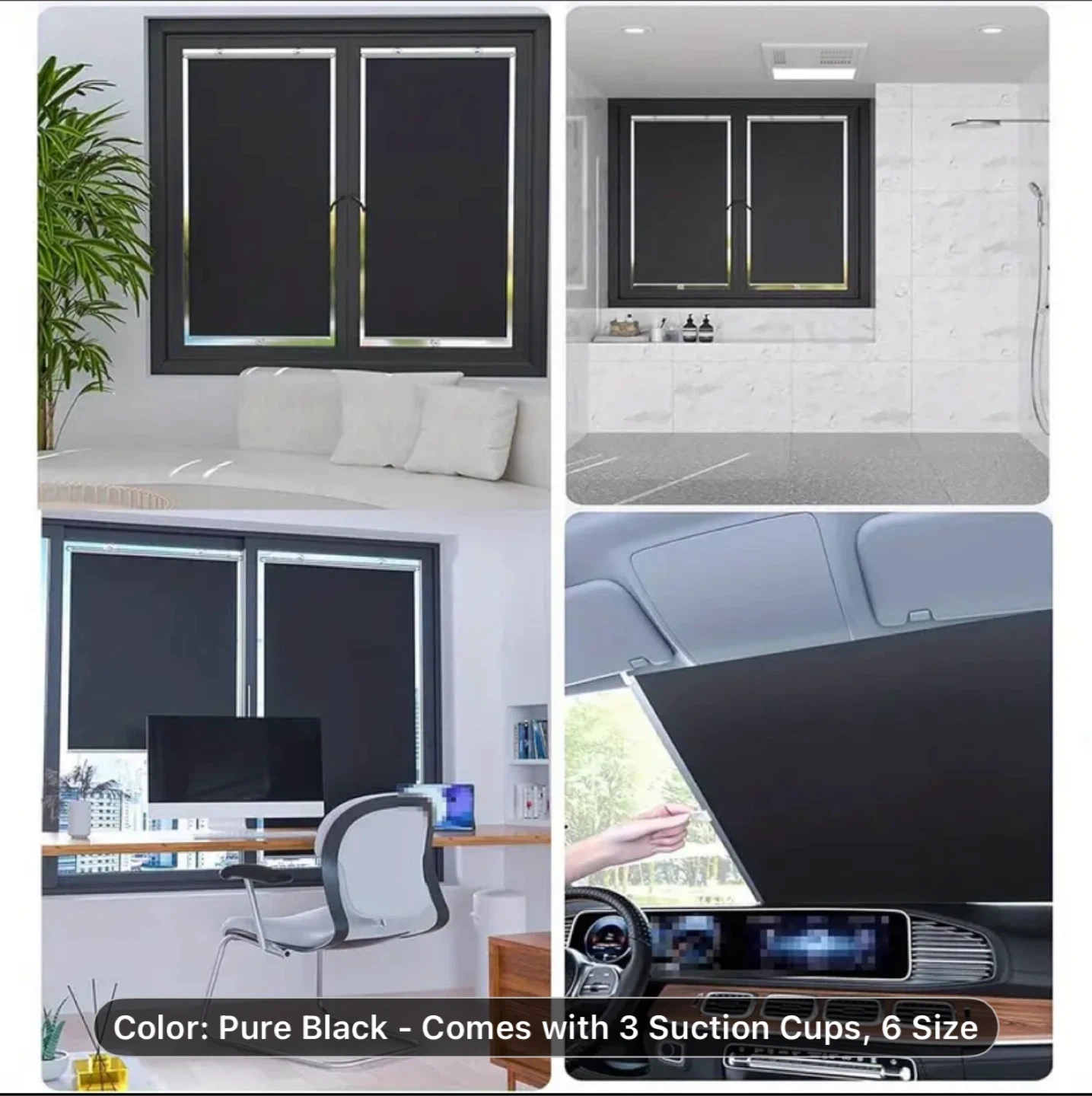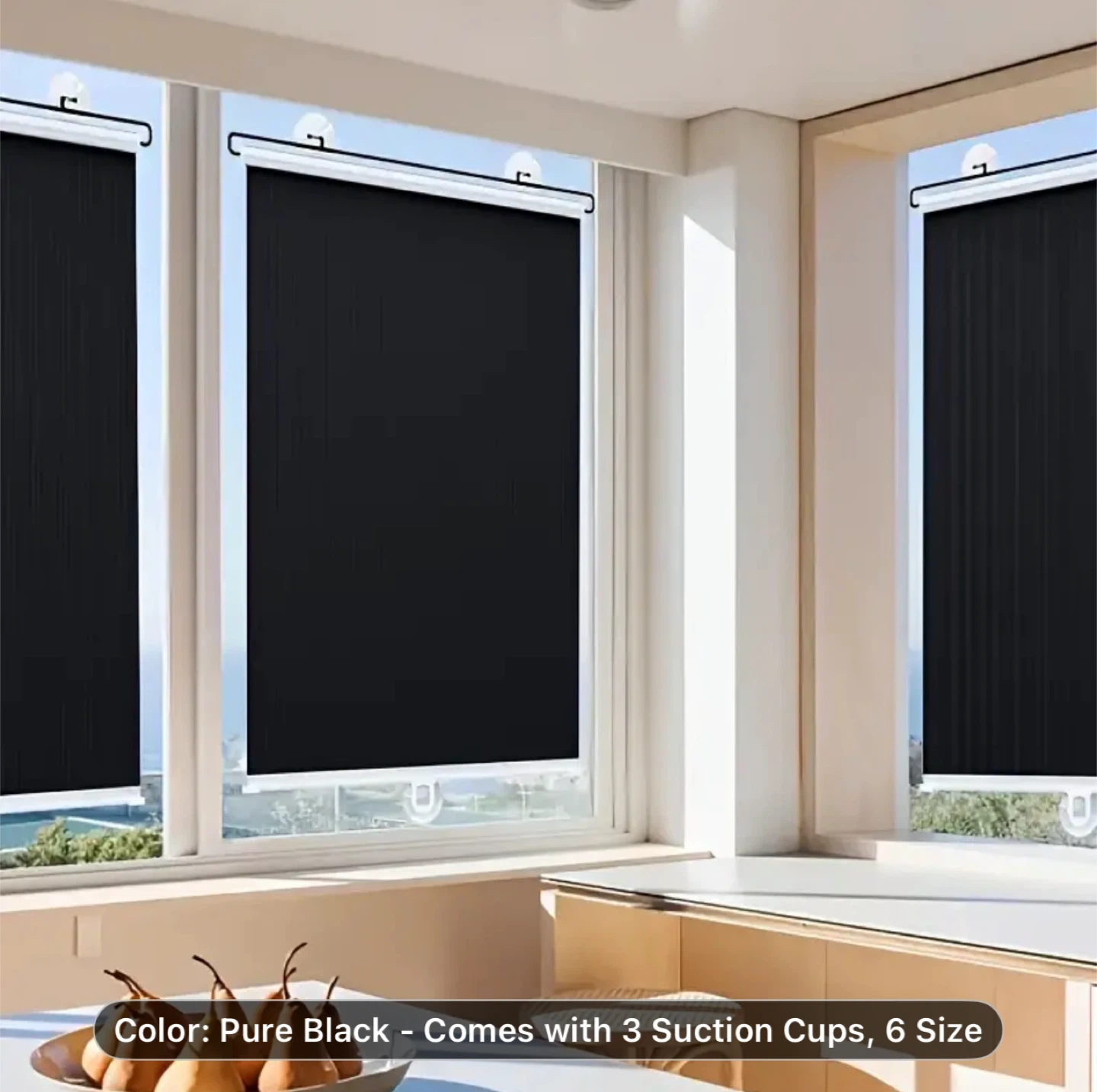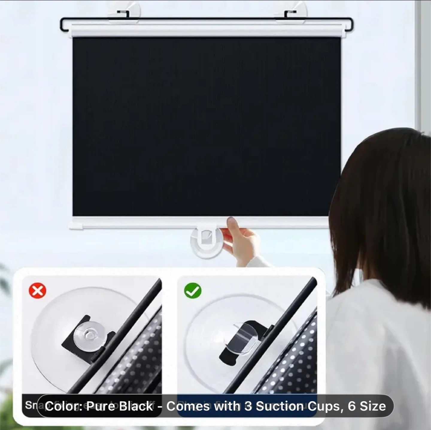 1pc No-Drill Suction Cup Blackout Curtain - High-Quality 100% PVC Heat Insulation Sun Shade, Retractable Roller Blind with Suction Cups, Cordless Design for Kitchen, Bathroom & Car Windows, Modern Style, Blocks Light and Heat, Bedroom Privacy Screen, Window Thermal Blinds | Smooth Texture