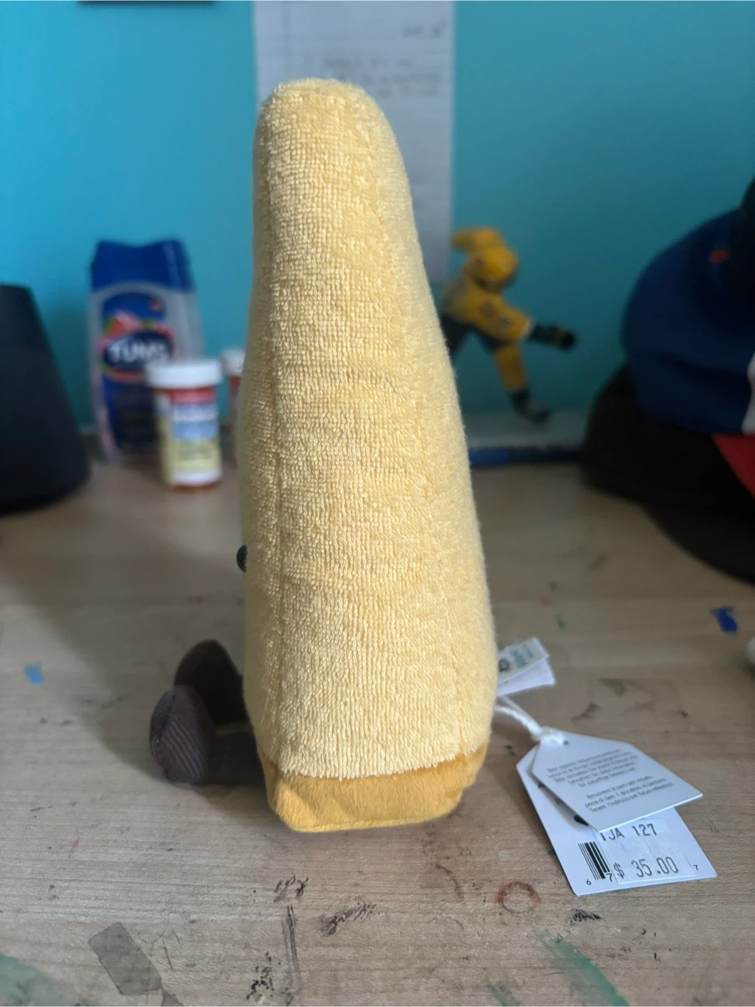 Looking to add a touch of whimsy to your space? This Jellycat Amuseable Slice of Brie plush is just the thing! It's brand new with tags and ready to bring a smile to your face. The soft, textured fabric and adorable design make it a delightful addition to any collection. Originally bought for $35