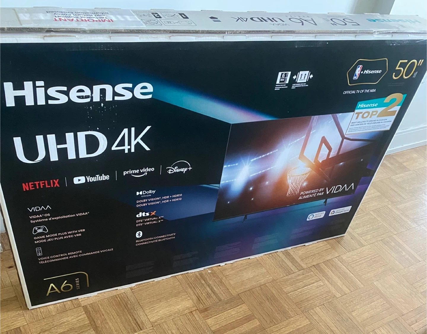 Selling a brand new, still-in-plastic screen cover Hisense 50-inch UHD 4K Smart TV! It's ready for a new home and comes with everything included as new. Key features include: - UHD 4K resolution - Smart TV functionality - Includes remote control