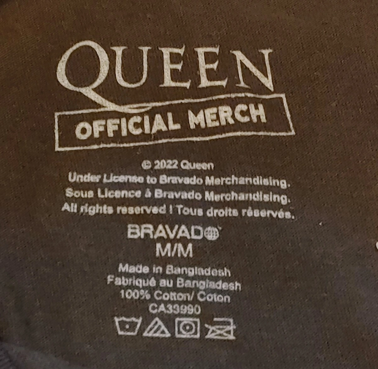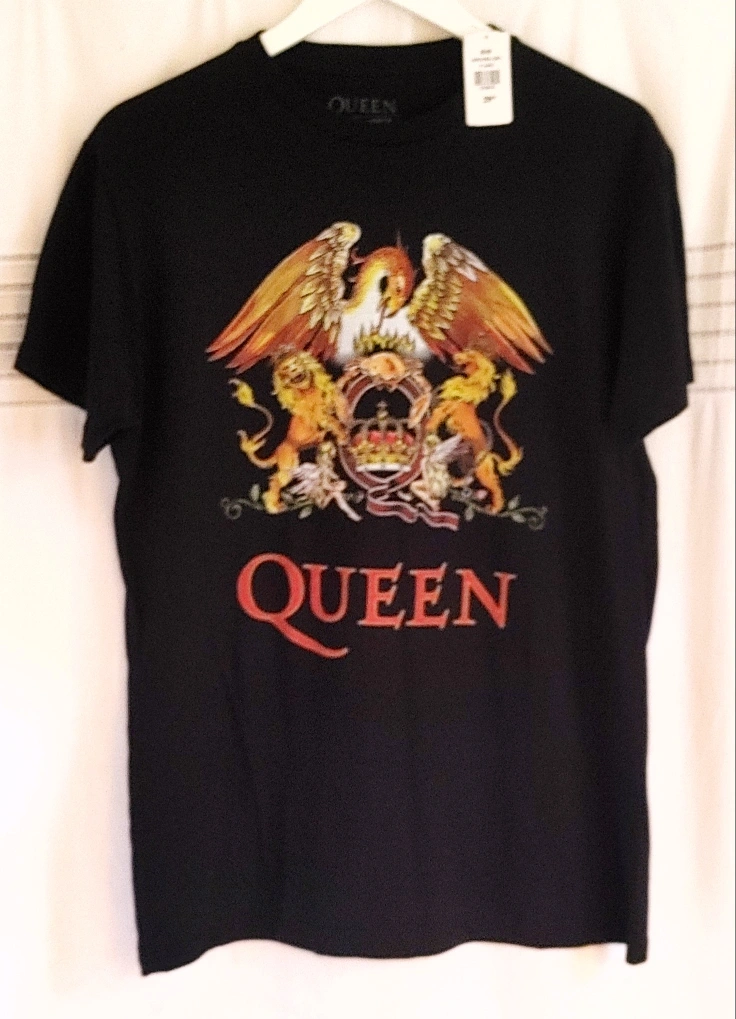 Men's Queen Official Merch T-Shirt in size M. It's black and made of 100% cotton. Mint condition. Tags still attached. No rips, stains or fraying. Smoke free home pick up Mt.Brydges cash only.