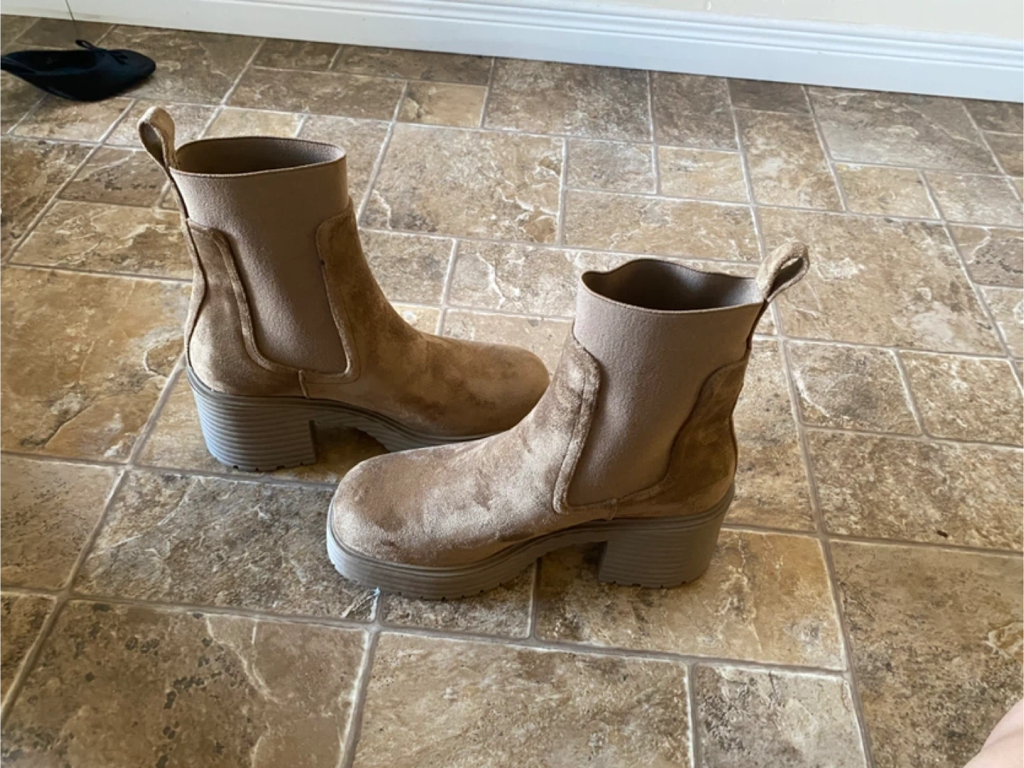 Selling a pair of Steve Madden boots in a lovely tan suede! They're in great shape and ready for a new home Never wore them so they basically brand new