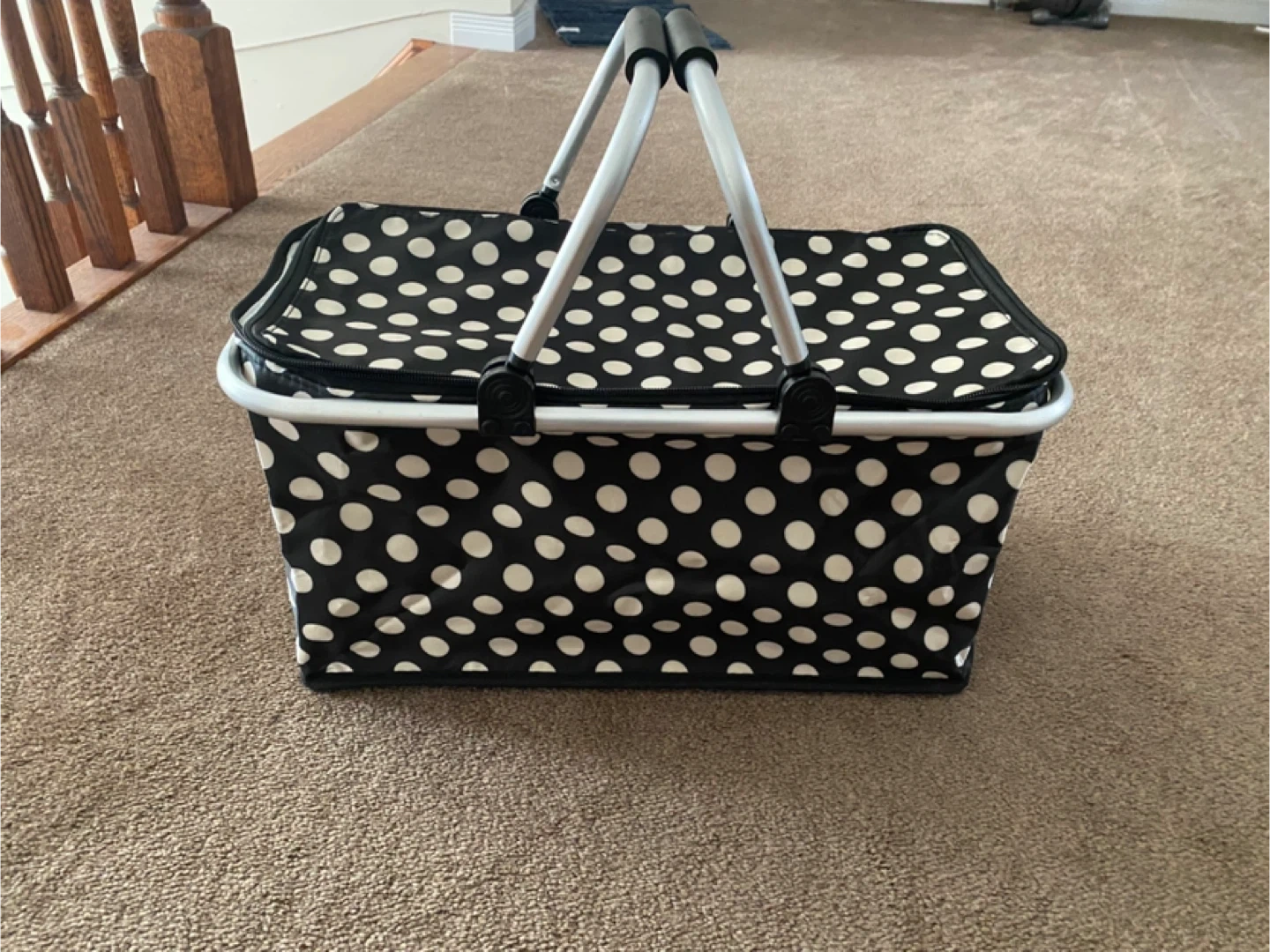 Here's a cute polka dot picnic basket! It's perfect for picnics in the park or outdoor gatherings and will save you tones of storage .It's in great condition and ready for a new home