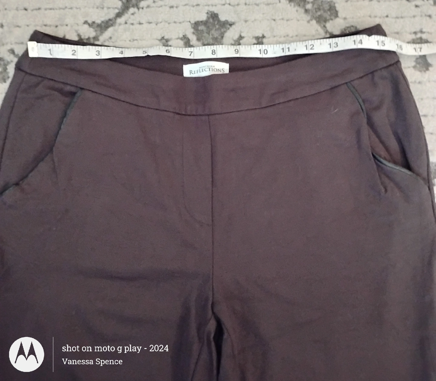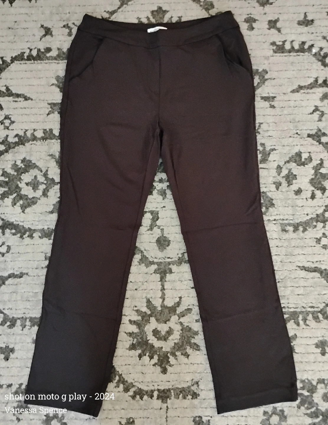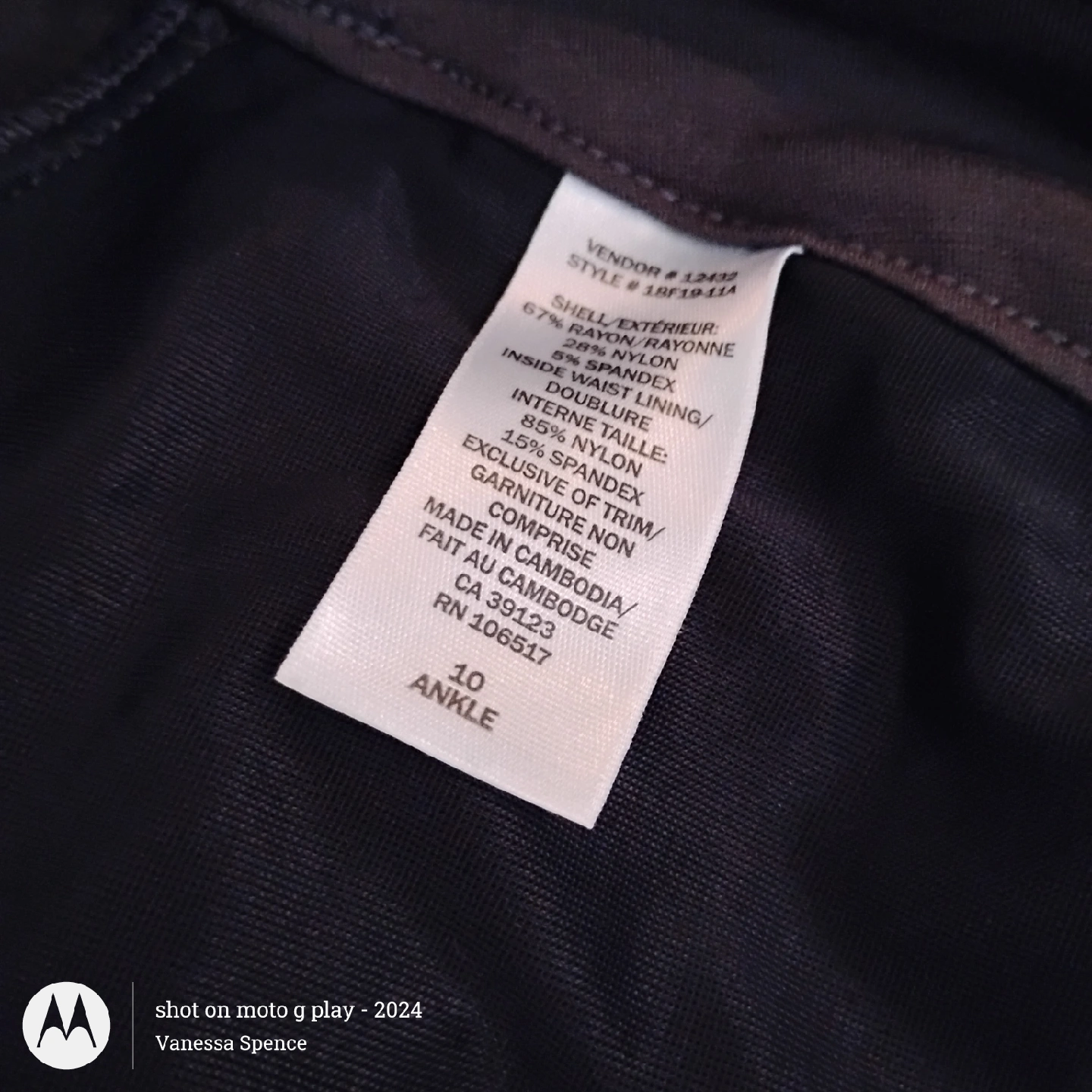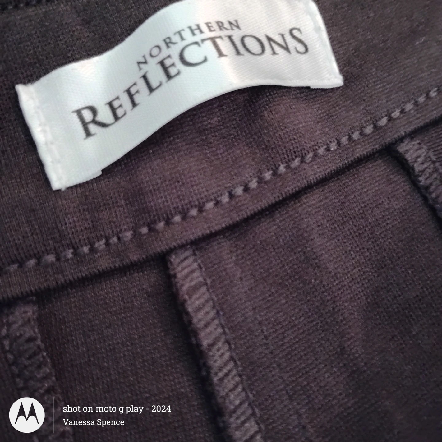 Northern Reflections pants in size 10. The pants are a dark brown colour. Material: - Shell: 67% Rayon, 28% Nylon, 5% Spandex - Inside Waist Lining: 85% Nylon, 15% Spandex