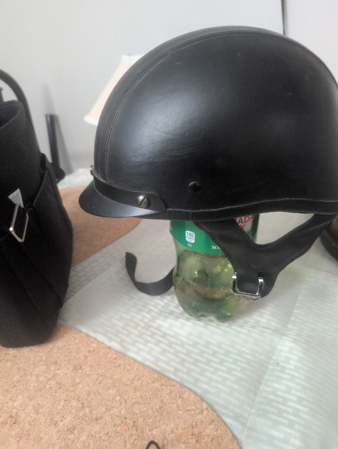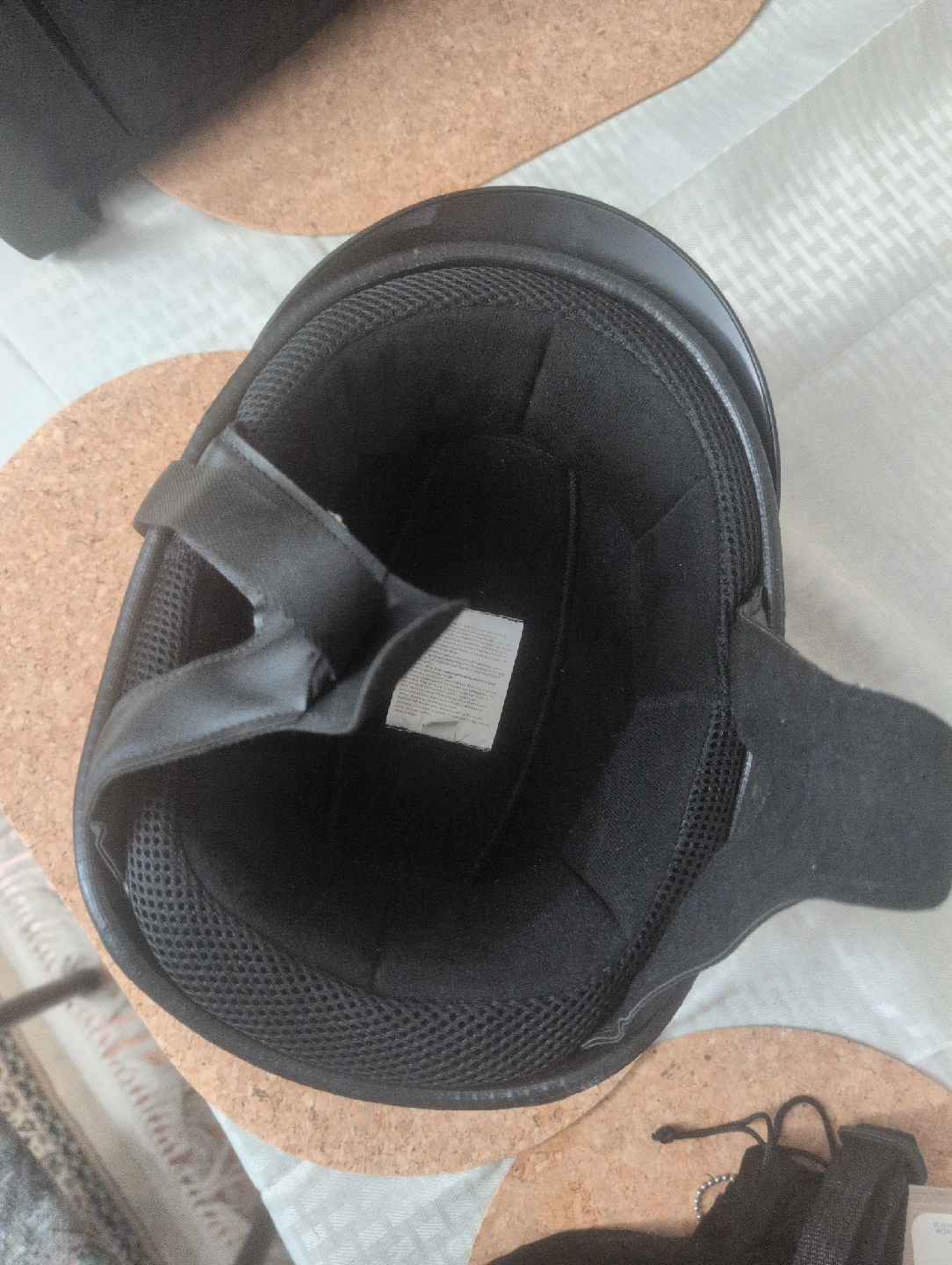 Selling a black DOT motorcycle helmet! It's in good condition and ready for a new rider. The helmet is designed to absorb shock and protect your head. Please ensure it fits properly before riding