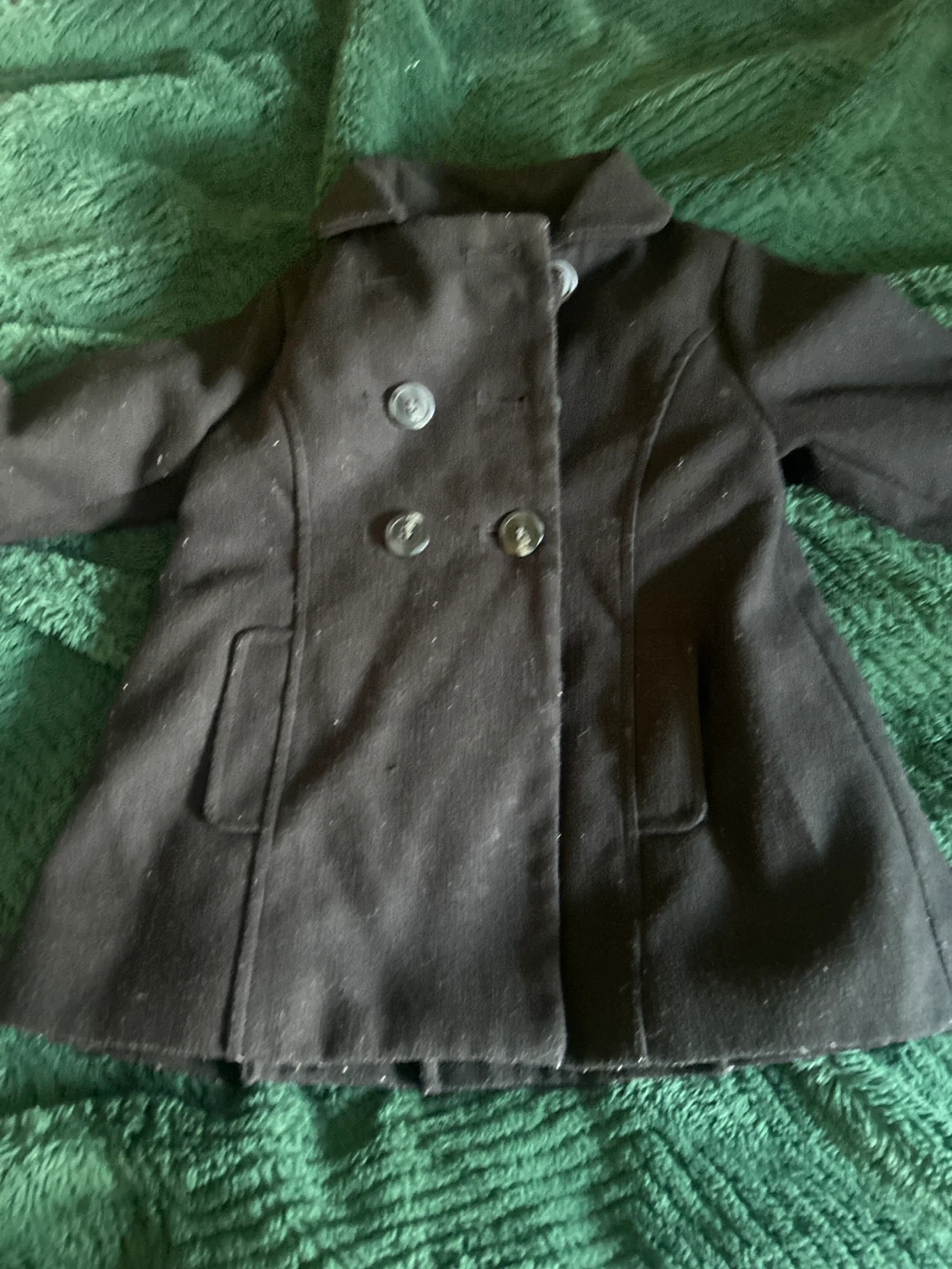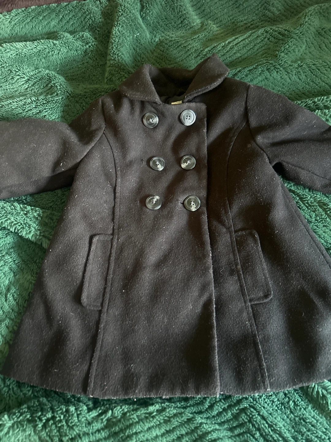 A cute black pea coat for a girl! It's made of a wool blend and is in great condition. Perfect for keeping your little one warm and stylish during cooler weather Old Navy brand