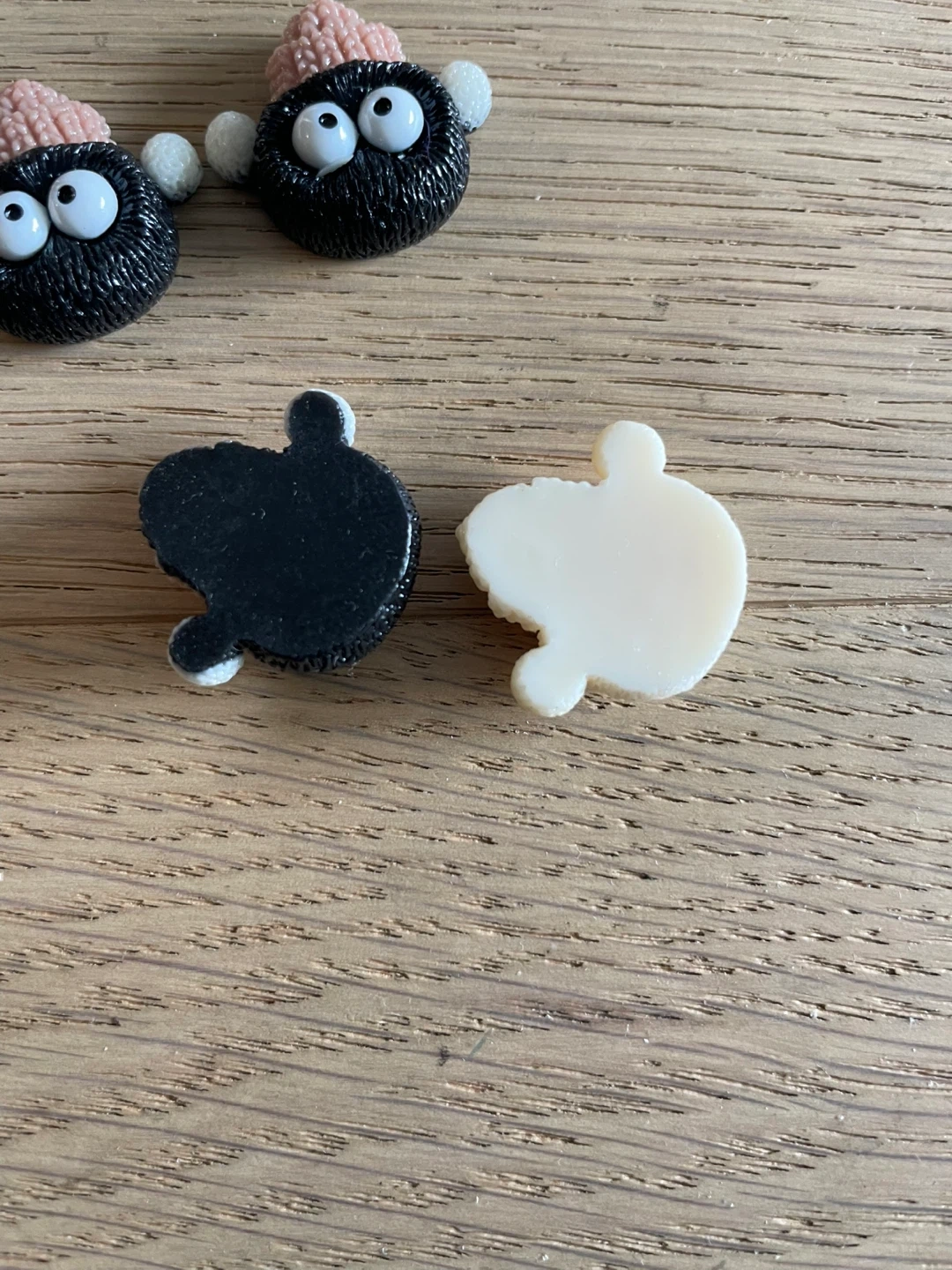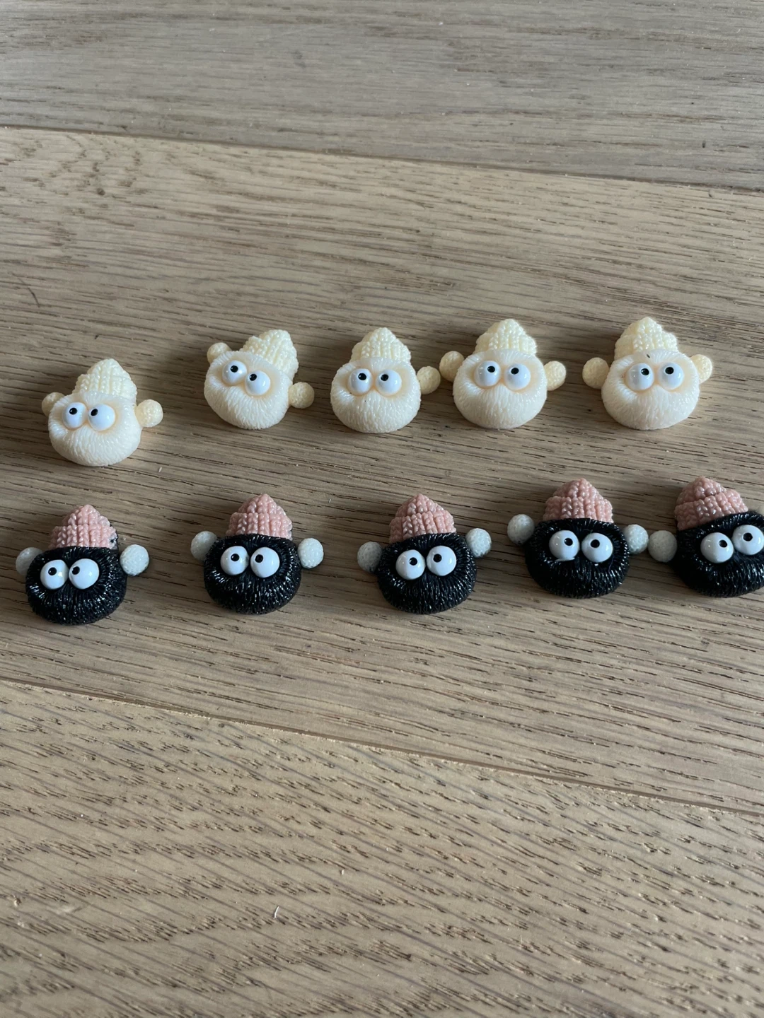 These are adorable little craft embellishments! They feature cute cartoon characters in black and white. Perfect for adding a whimsical touch to your craft projects Cash only