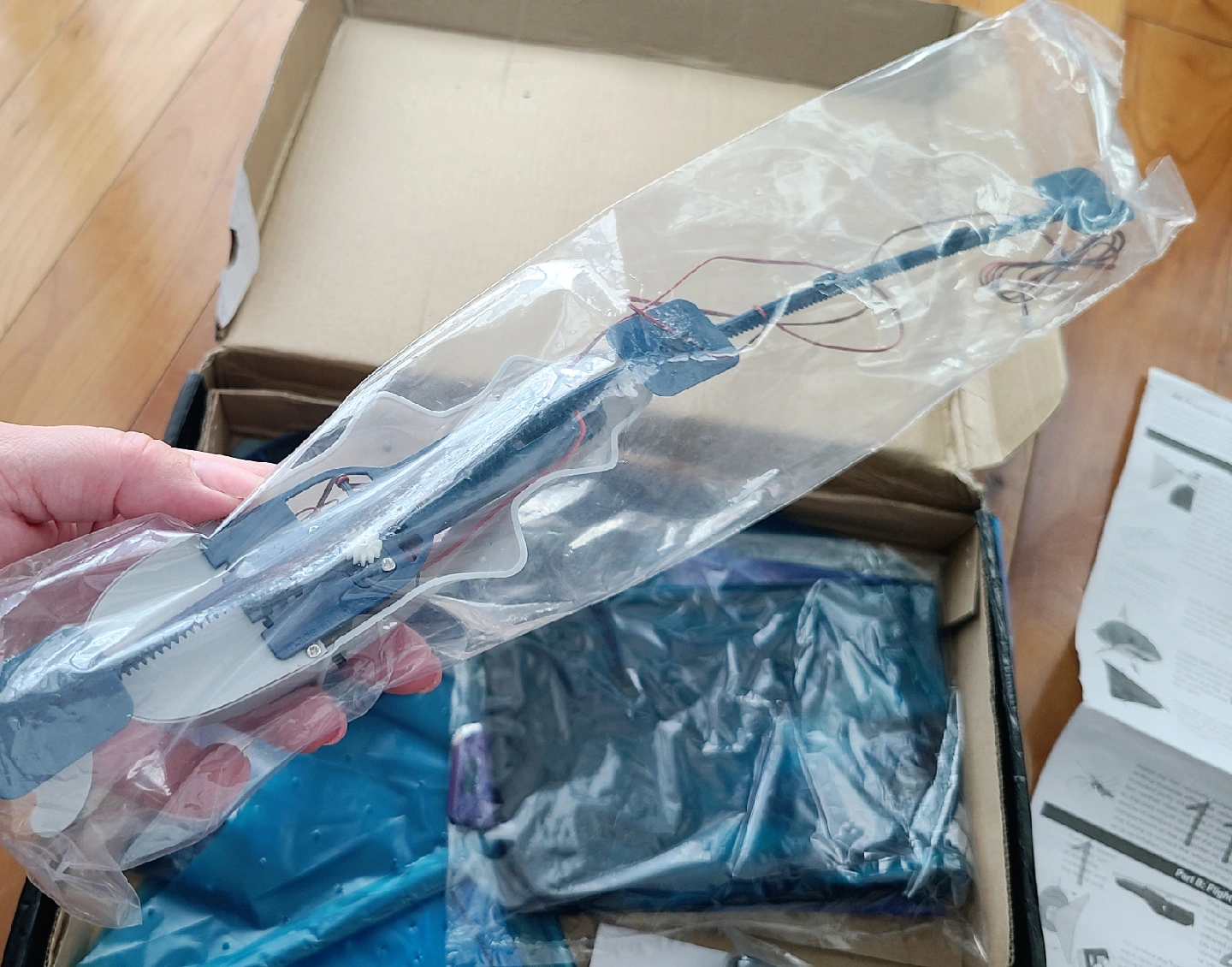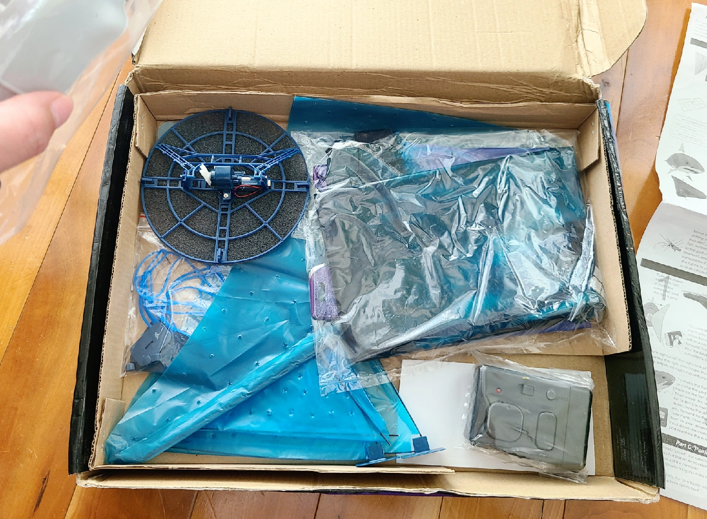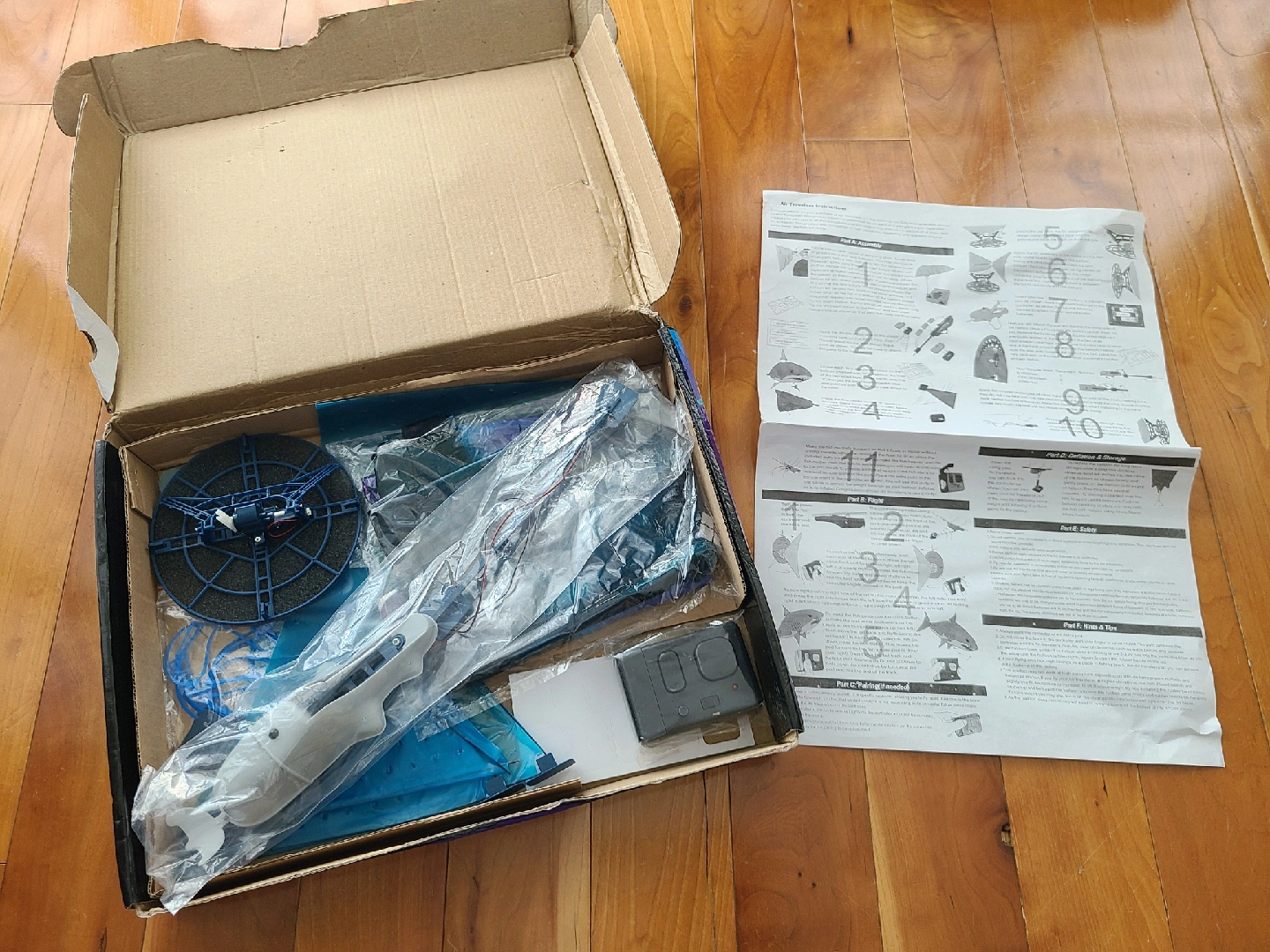Remote Control Flying White Shark! It's an air-swimming fish that swims through the air. It moves like a real fish and steers in any direction. Great for indoor fun! For ages 8 and up. Opened but never been setup.