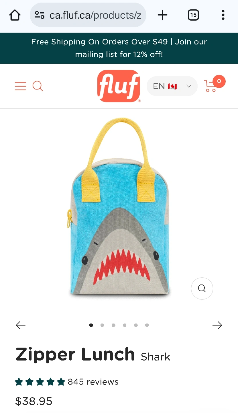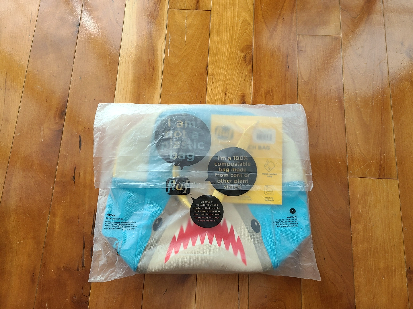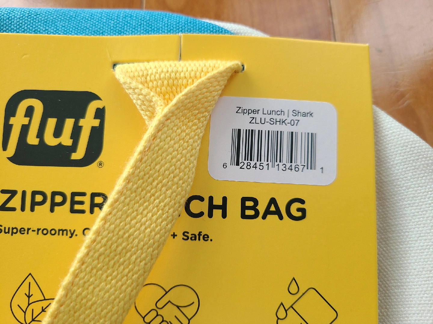 This Fluf Zipper Lunch bag features a fun shark design! It's perfect for packing lunches and snacks. - Water-resistant lining: 100% RPET (recycled water bottles) - Outer material: 100% GOTS-certified organic cotton - Machine washable and packs flat when not in use