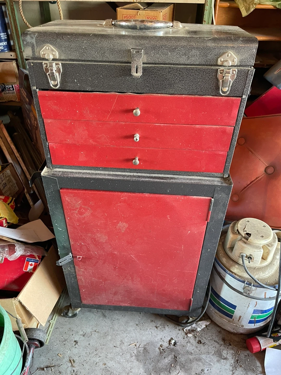 Vintage Test Right Rolling Tool Chest With Bottom Cabinet Located in Olds, Ab
