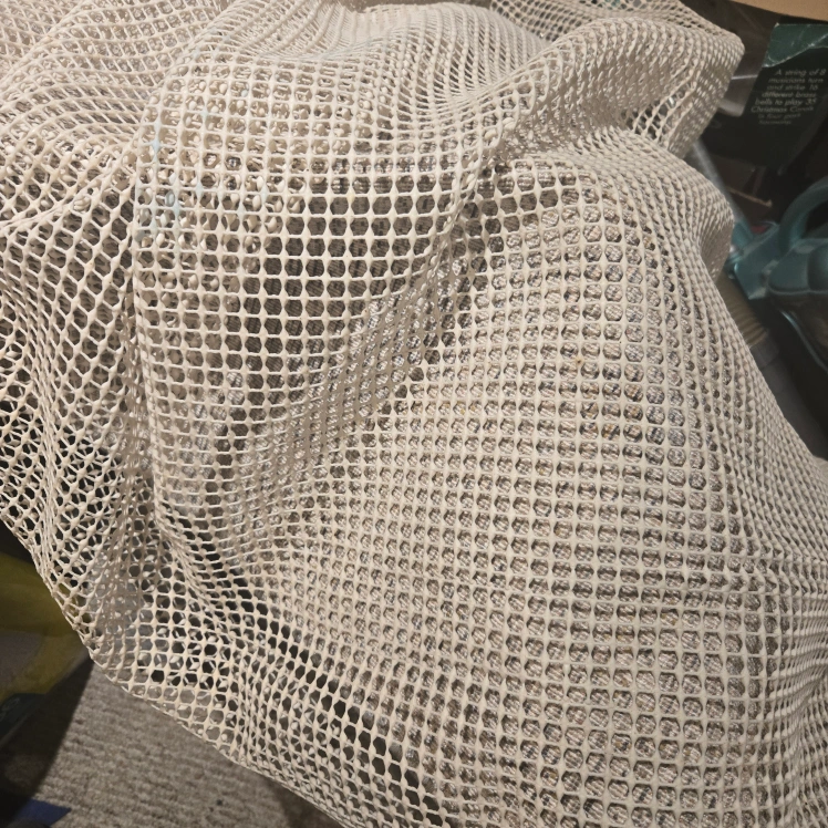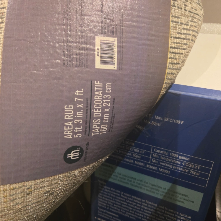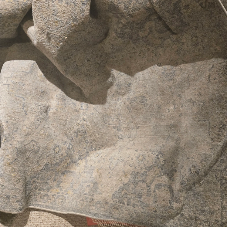 Great-sized rug for a living room or bedroom! Naturally stain- and fade-resistant. Has been in storage and may benefit from a light wash. Includes a nonslip pad for safety and stability.