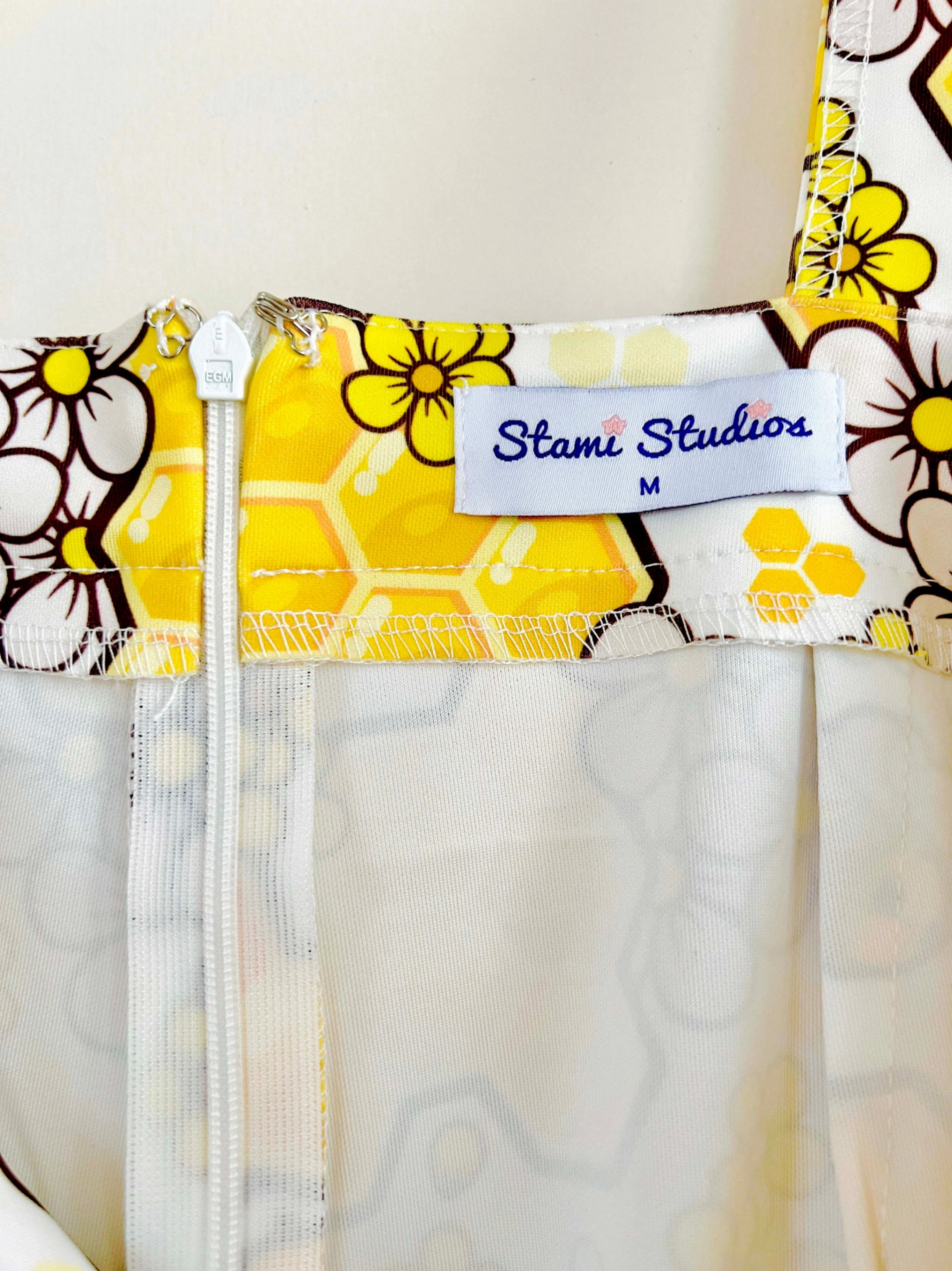 Brand new, unworn. Original retail price was $76. Imported from the UK. Size medium. Fits bust 37-39", waist 29.5-32", hips 40-42.5" Has large pockets, adjustable straps and reverse chest print. Cash only and price is firm.
