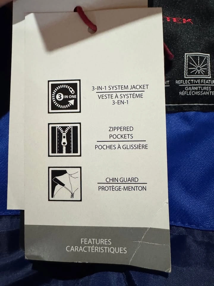 New with tags. Size: Boys medium (10-12) Colour: Blue * Removable long sleeved fleece zip up with pockets * Insulated for cold weather * Water resistant * Storm flap zipper closure * 3 front zipper pockets * Reflective technology to help him stand out * Body/Lining/Filling: 100% polyester * Machine wash Pick up near Scarborough Town Centre. Check out my other listings (click on my name and scroll). Thanks for looking! ☺️