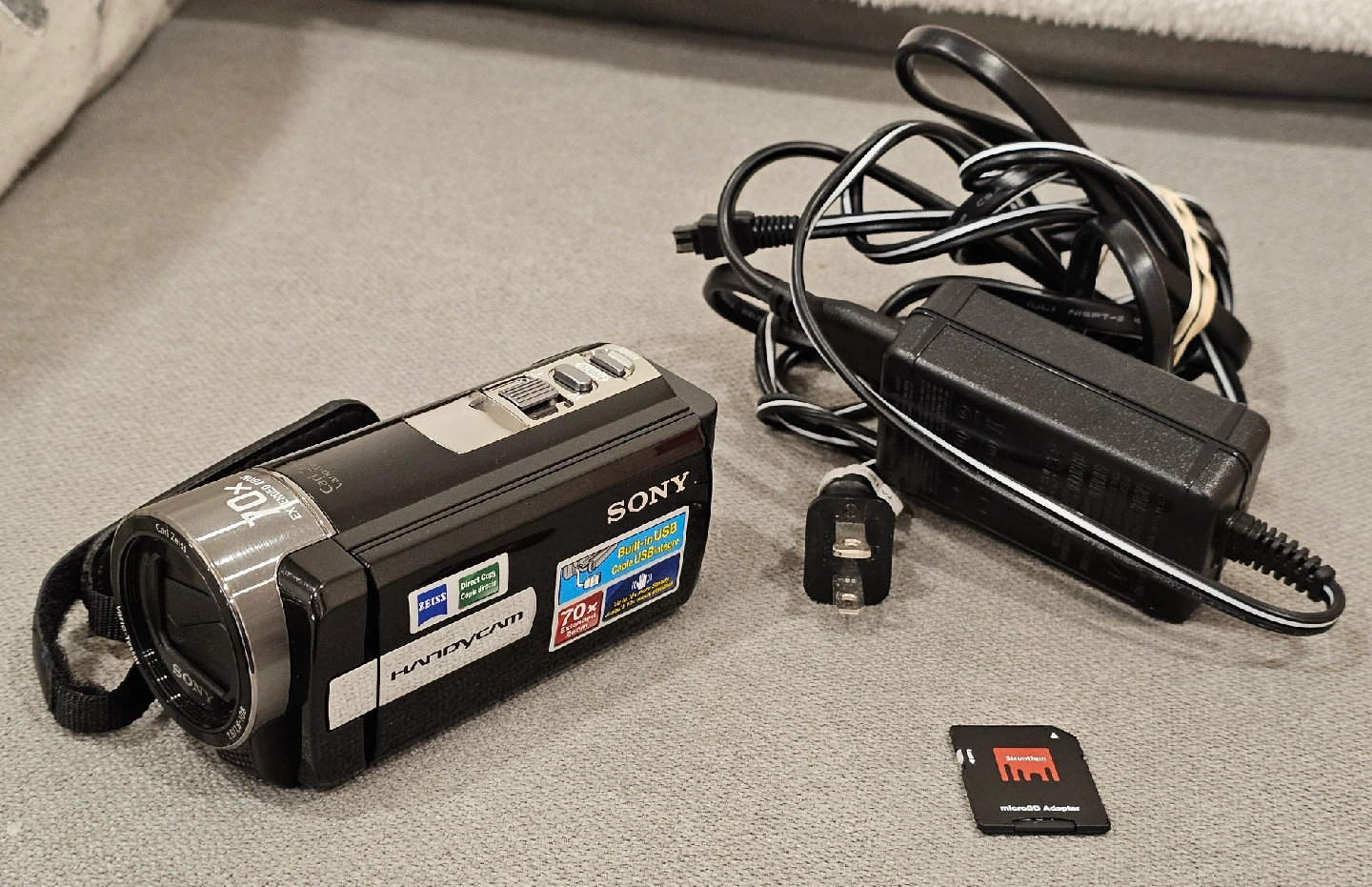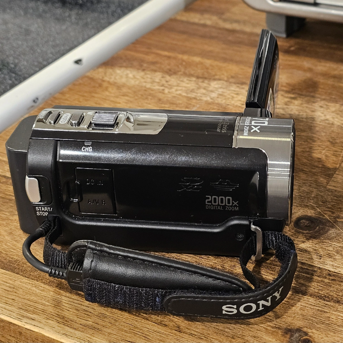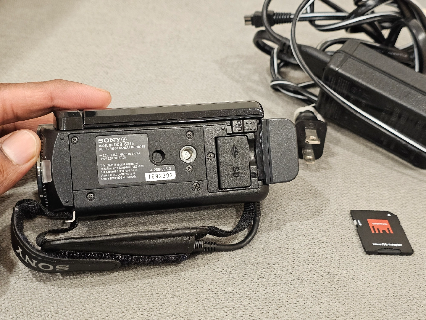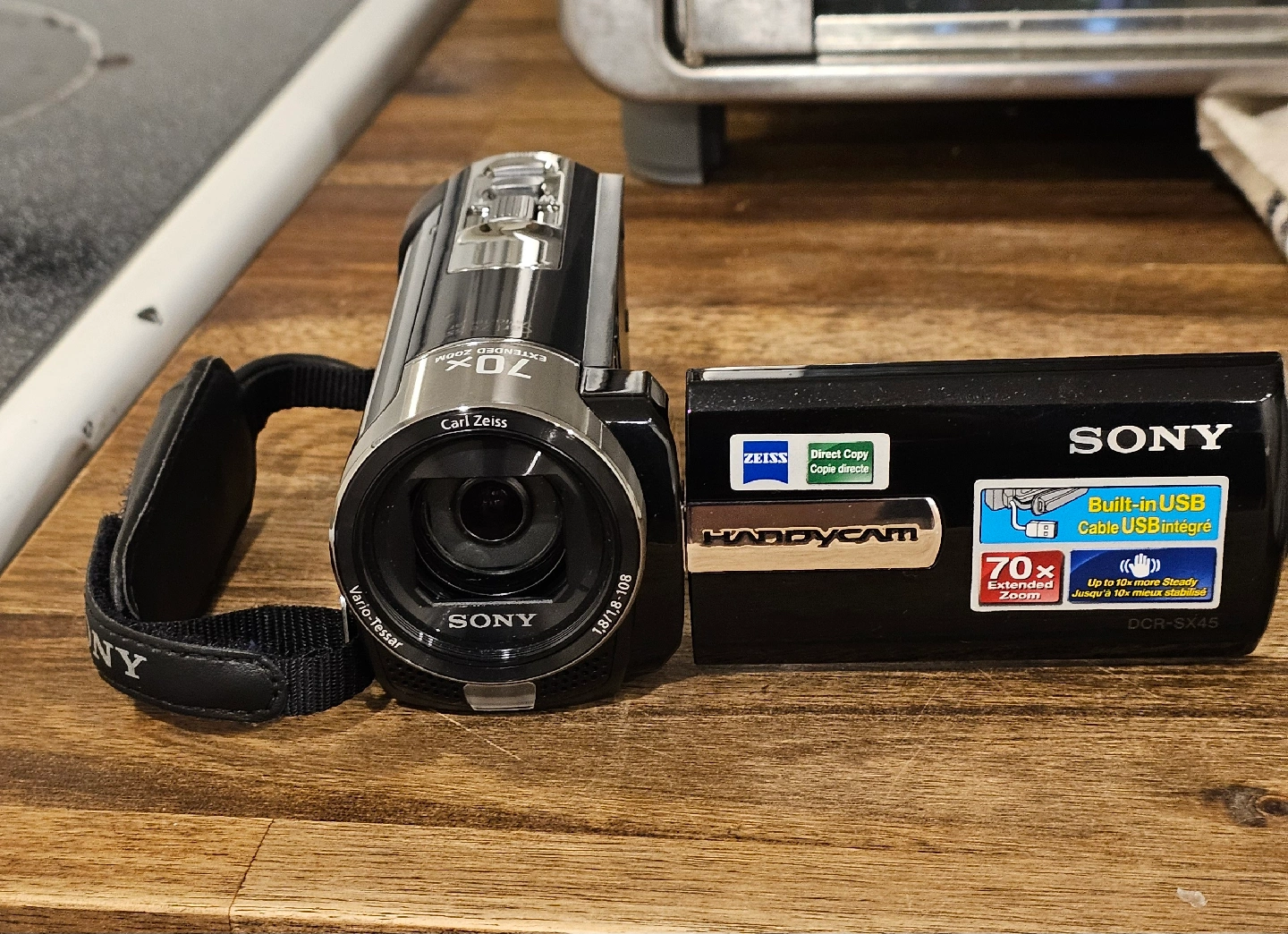Selling a Sony Handycam DCR-SX45. It features a 70x extended zoom, Carl Zeiss Vario-Tessar lens, and built-in USB cable for easy integration. Comes with the power charger and a micro SD adapter. Perfect for capturing memories! CHECK MY OTHER LISTING TOO