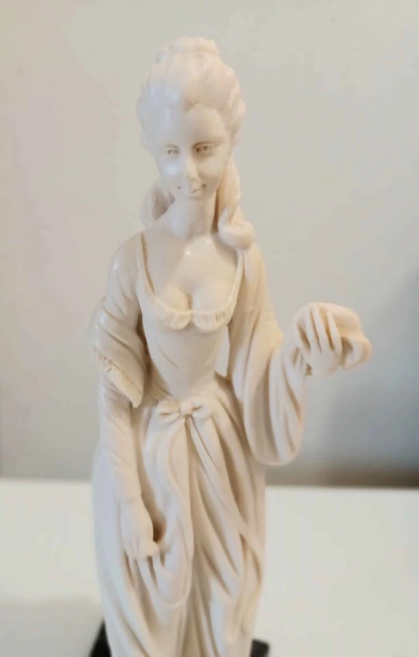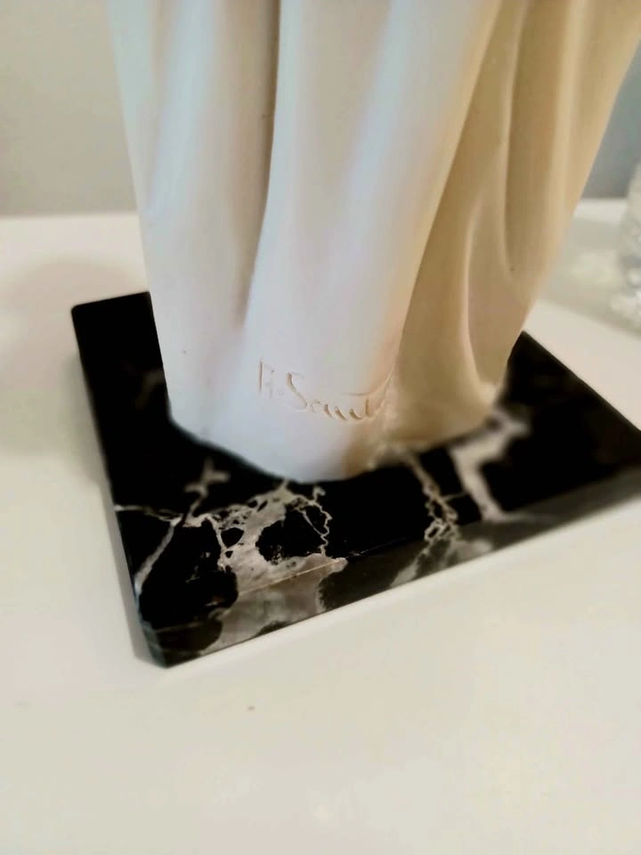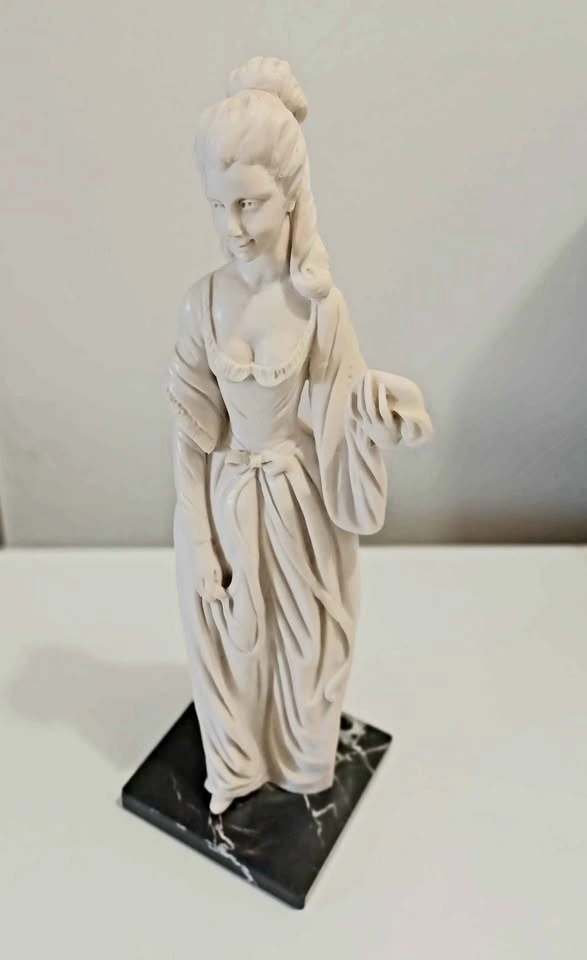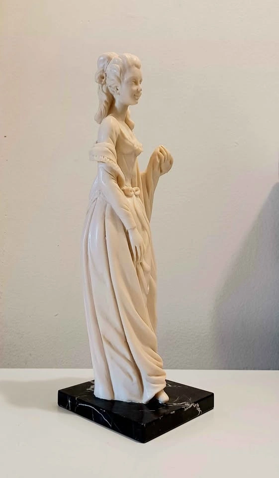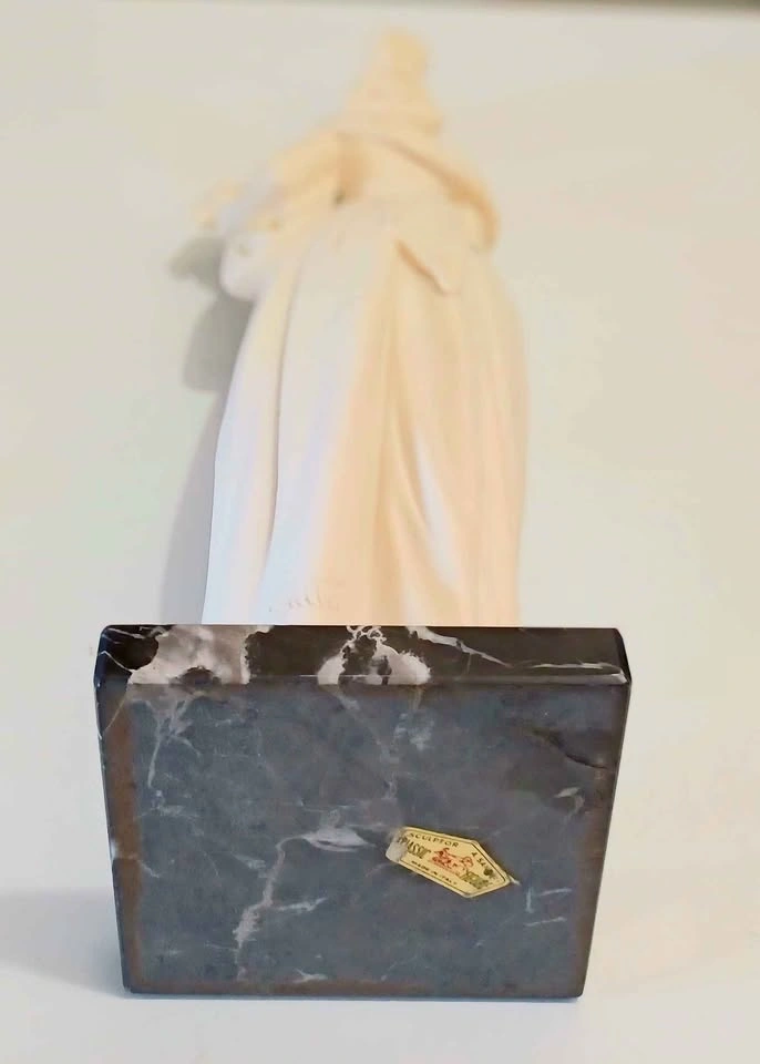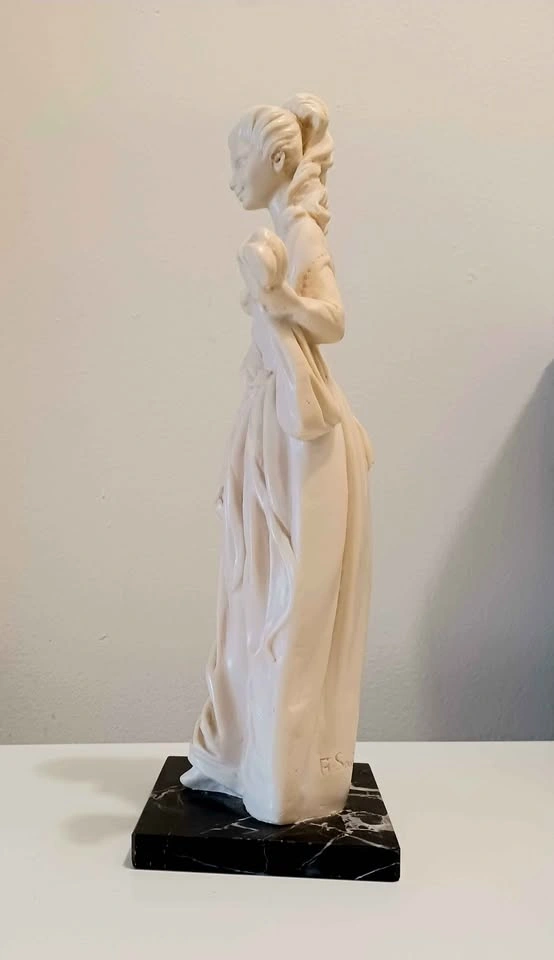 Vtg. Mid Century , Authentic Signed, Rare Hand Carved, Decorative Tall Statue of Classic Victorian Lady Era figure of in a Flowing Dress & Marble Base, Sculpted by : A. Santini, known for his Italian Sculptures (1910-1975 ) Age 65 Years Santini's works often Capture the Elegance and Movement of the subject, and this Piece is no Exception Height : 33 cm - 13" Excellent Condition, no chips or cracks with Sticker Please check out my other posts!