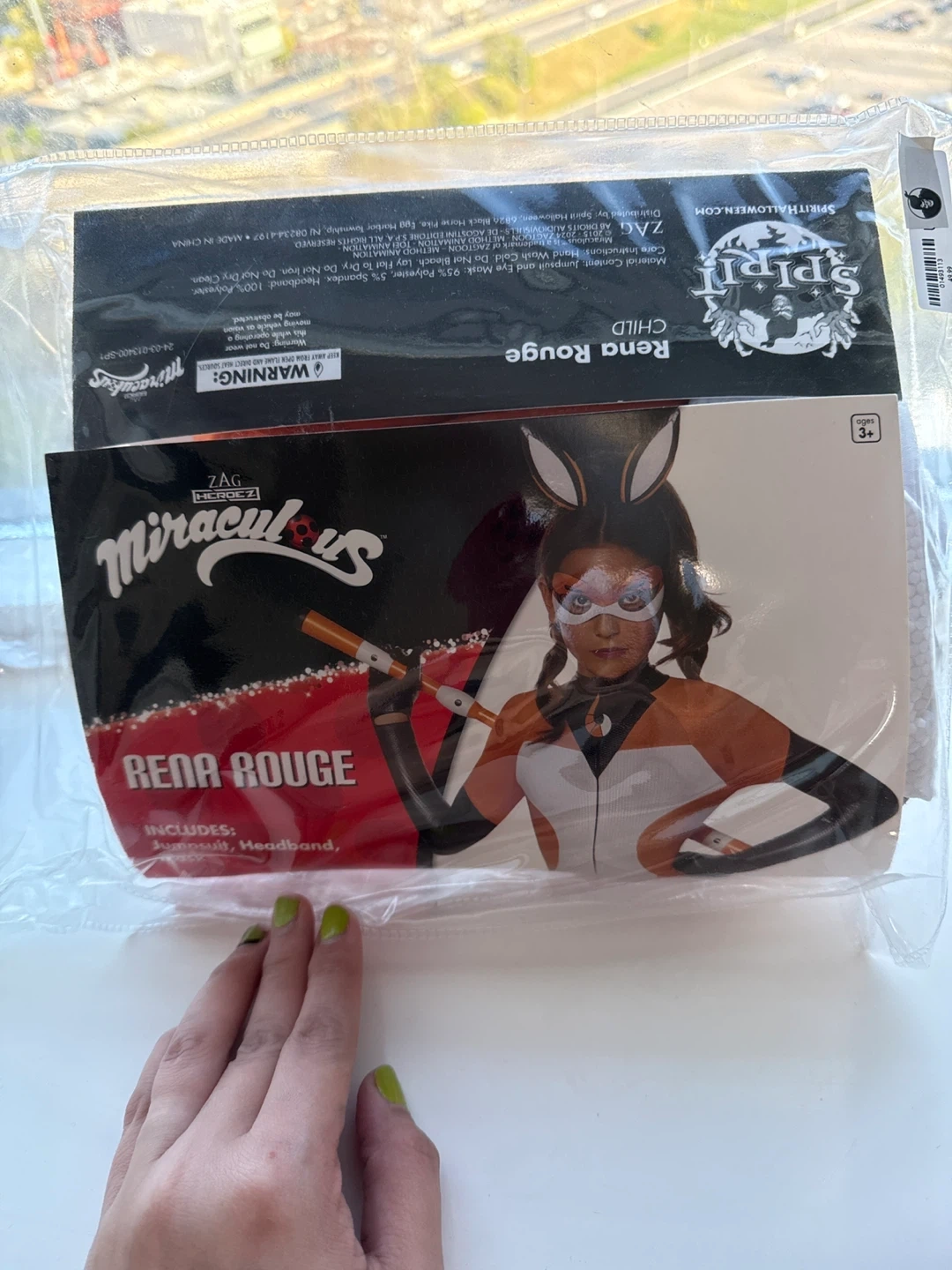 Get ready to transform with this Miraculous Rena Rouge costume for kids! This set includes a mask, headband, and other accessories to complete the look. Perfect for Halloween or dress-up fun!