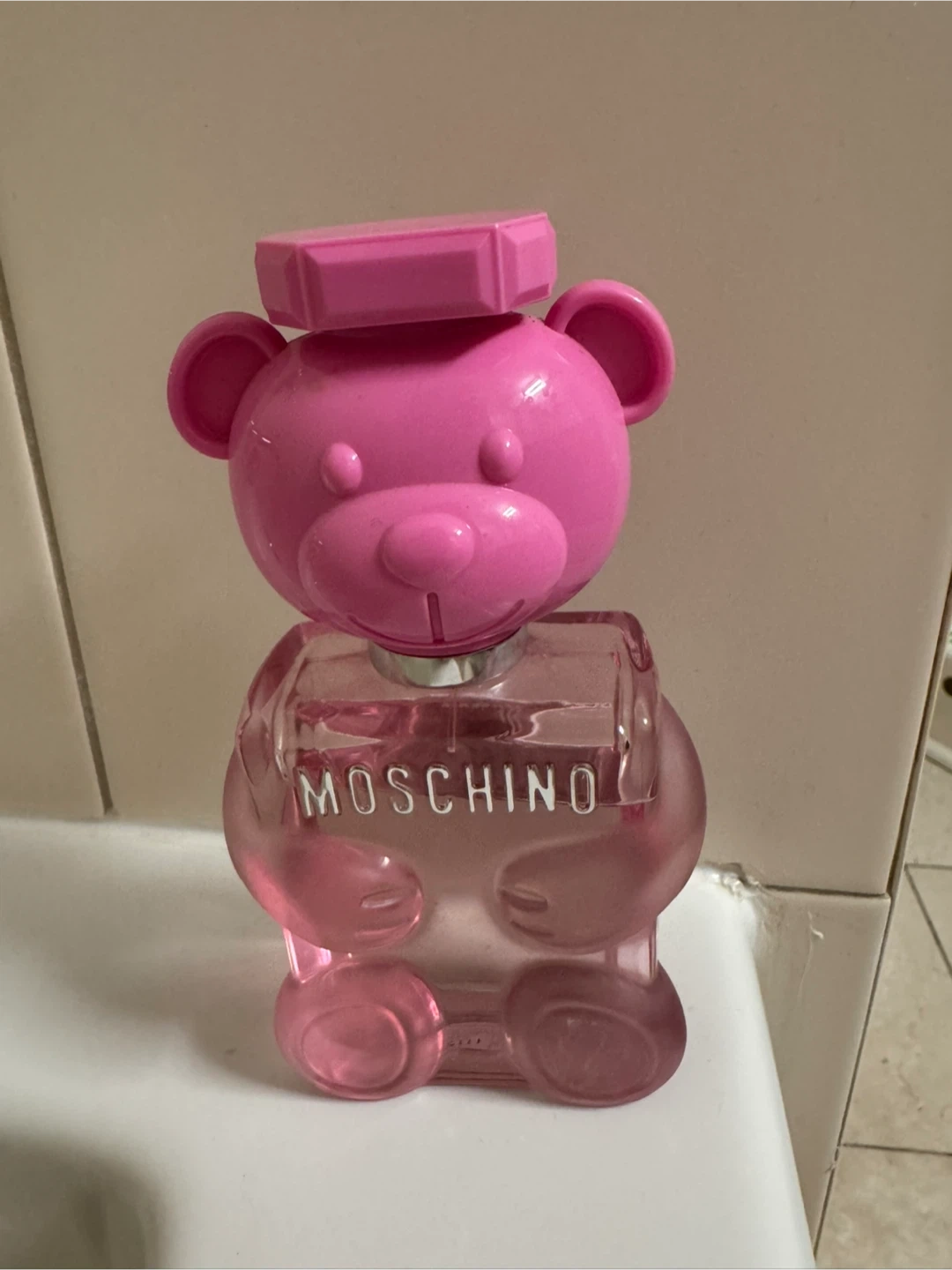 Selling a Moschino Toy 2 Bubble Gum perfume. It's a fun and playful scent that comes in a unique teddy bear bottle. The perfume is pink and has a sweet bubble gum fragrance. Perfect for adding a touch of whimsy to your day