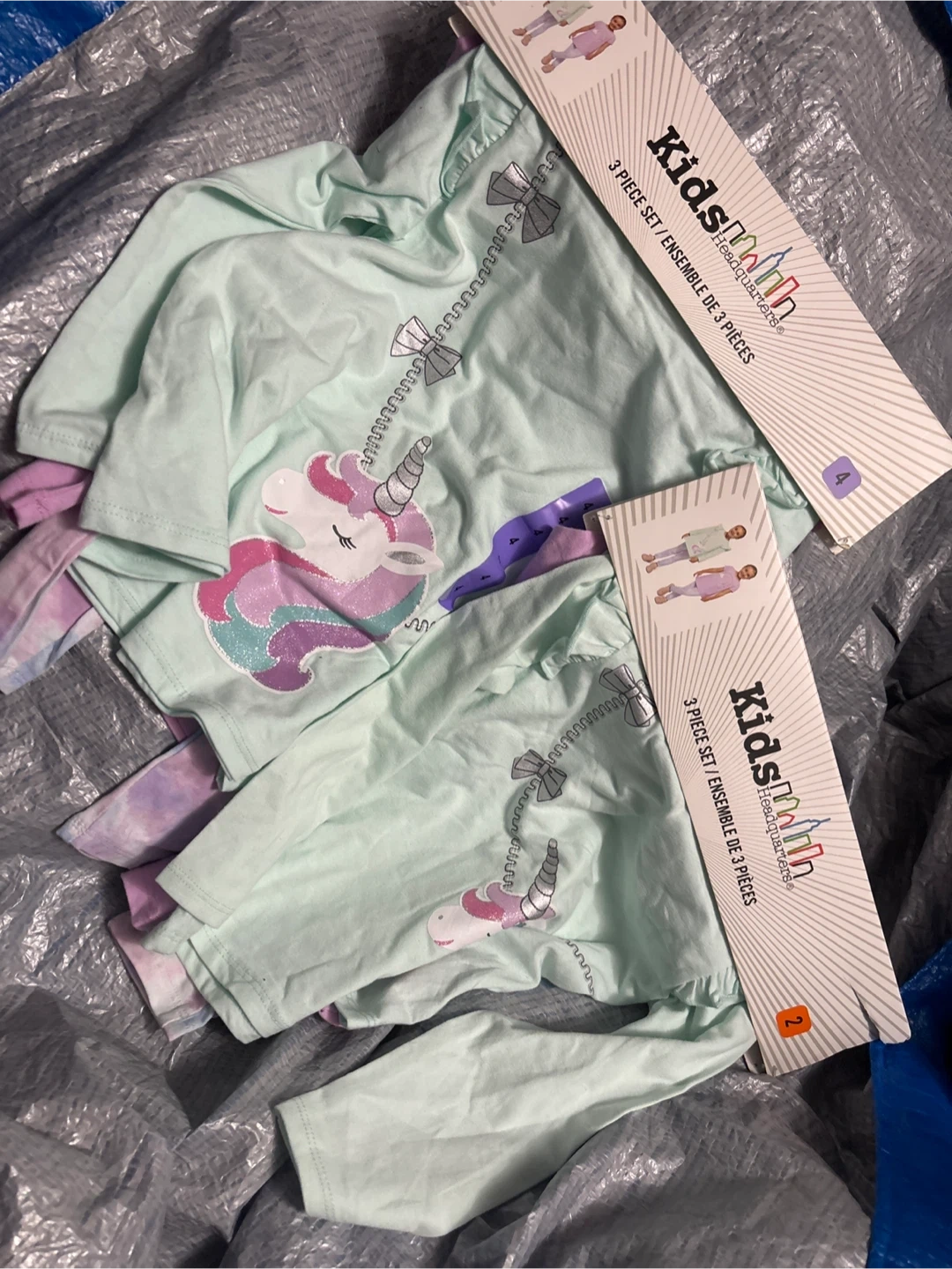 Size 4 sold This is a super cute 3-piece set from Kids Headquarters! It includes a top and leggings with a fun unicorn design. The size is 2