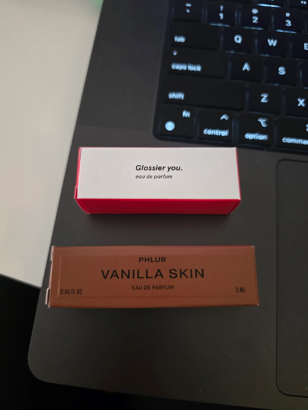 Selling two fragrance samples: - Phlur Vanilla Skin Eau de Parfum (2 mL) - Glossier You Eau de Parfum (2ml) Price for both.