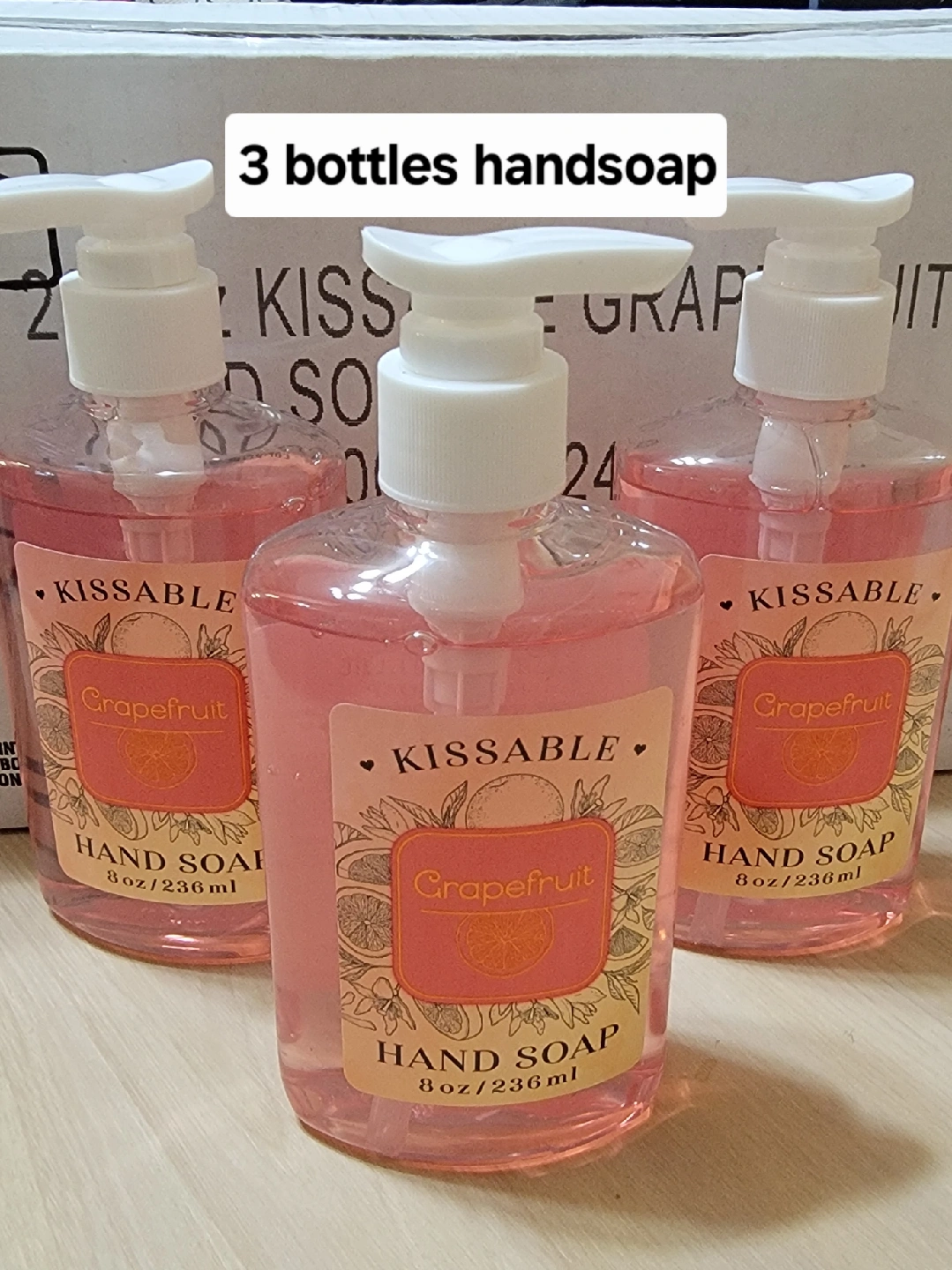 Selling three bottles of KISSABLE Grapefruit hand soap. New