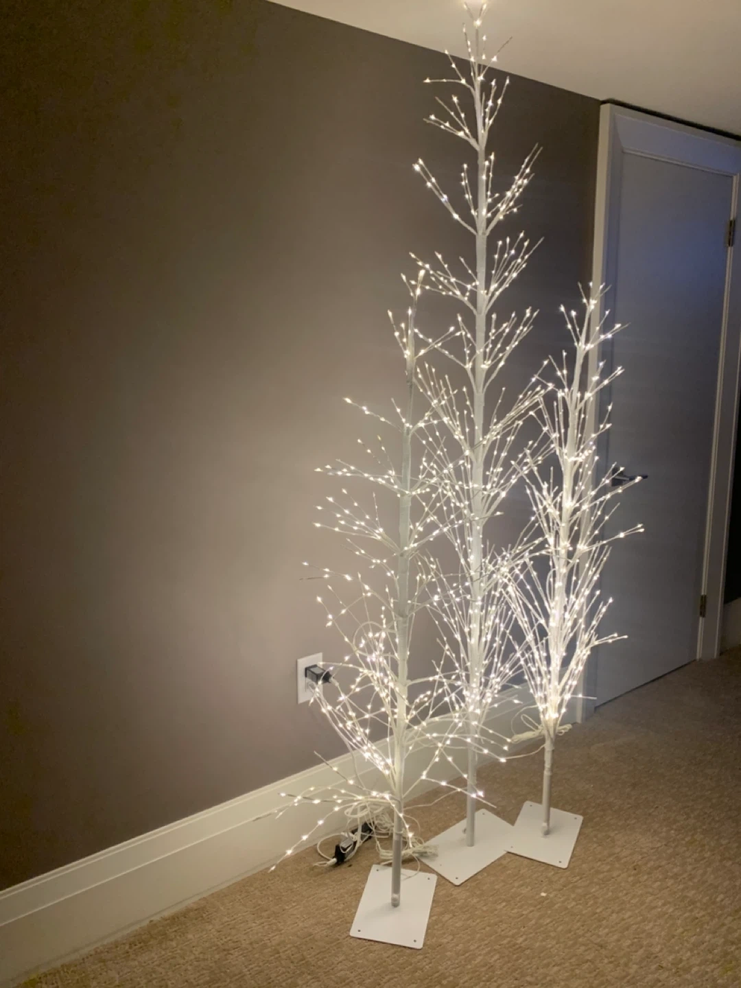 Selling a set of three white LED birch trees! They add a nice cozy glow to any room. Perfect for the holidays or just to add some light to your space