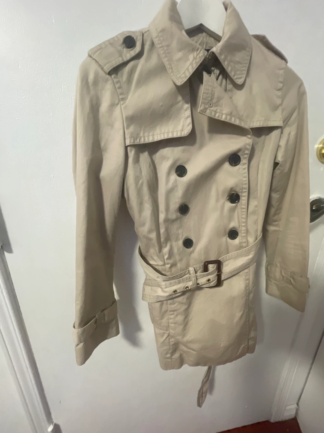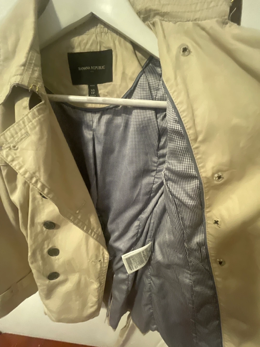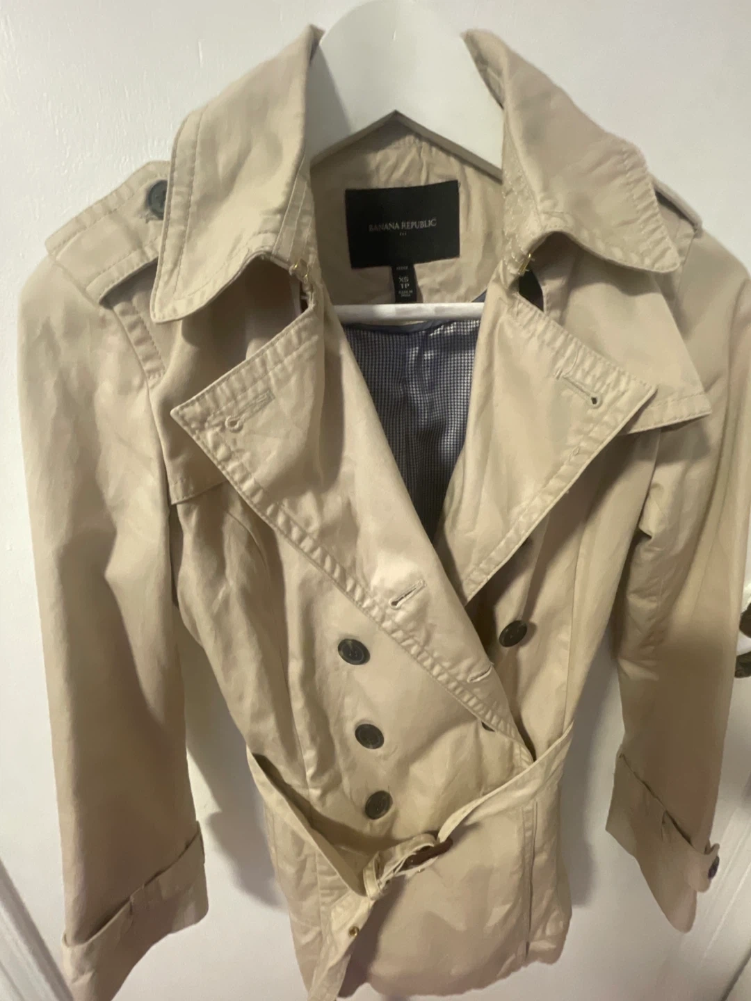 Selling a gently used Banana Republic trench coat in size XS Petite. It's a classic style in a versatile beige colour. Perfect for those cooler days and evenings!
