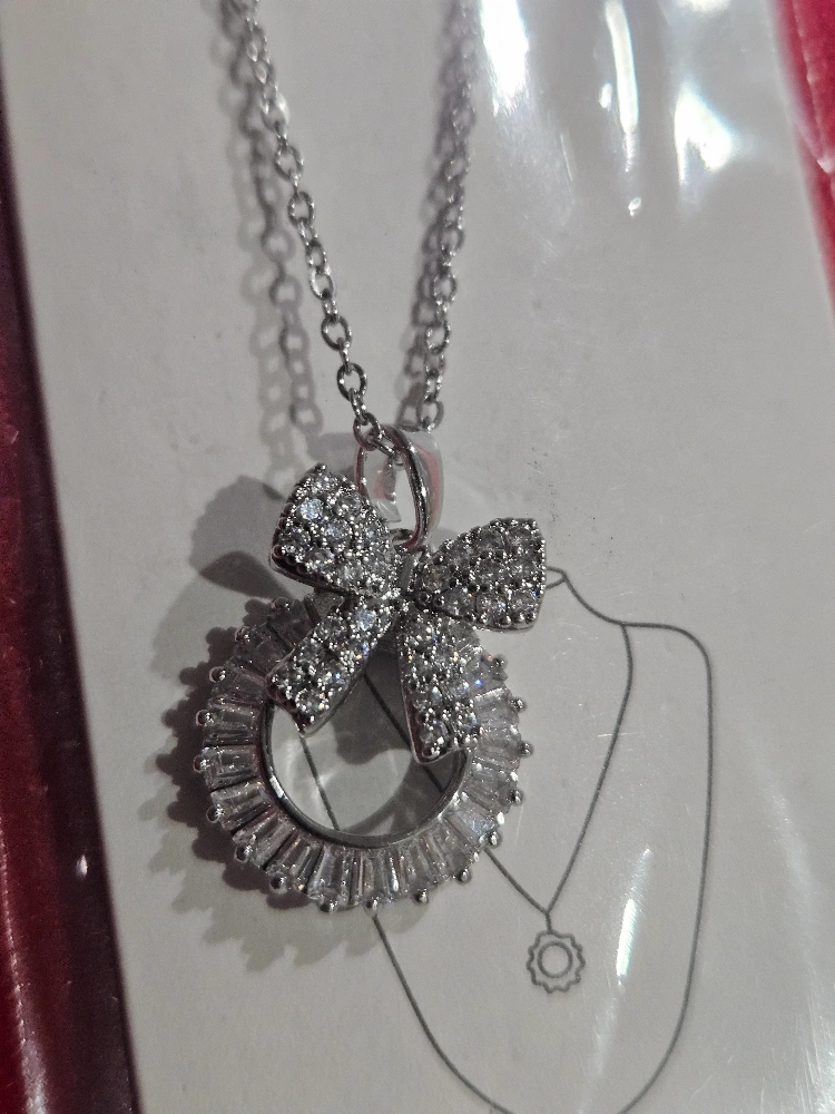 Brand new silver necklace with a cute ribbon pendant! It's made of stainless steel and has a lovely sparkle. Perfect for adding a touch of elegance to any outfit