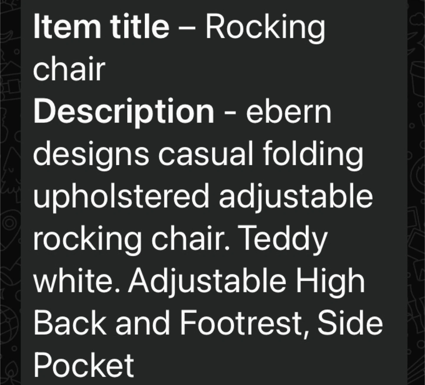 Selling a brand new Ebern Designs casual folding upholstered adjustable rocking chair! It's in teddy white, and features an adjustable high back and footrest, plus a handy side pocket. The dimensions are approximately 23.3 inches wide, 34.7 inches high, and 42.2 inches deep. Comes in the original box and is ready for easy assembly! Can meet up in Mississauga for this item.
