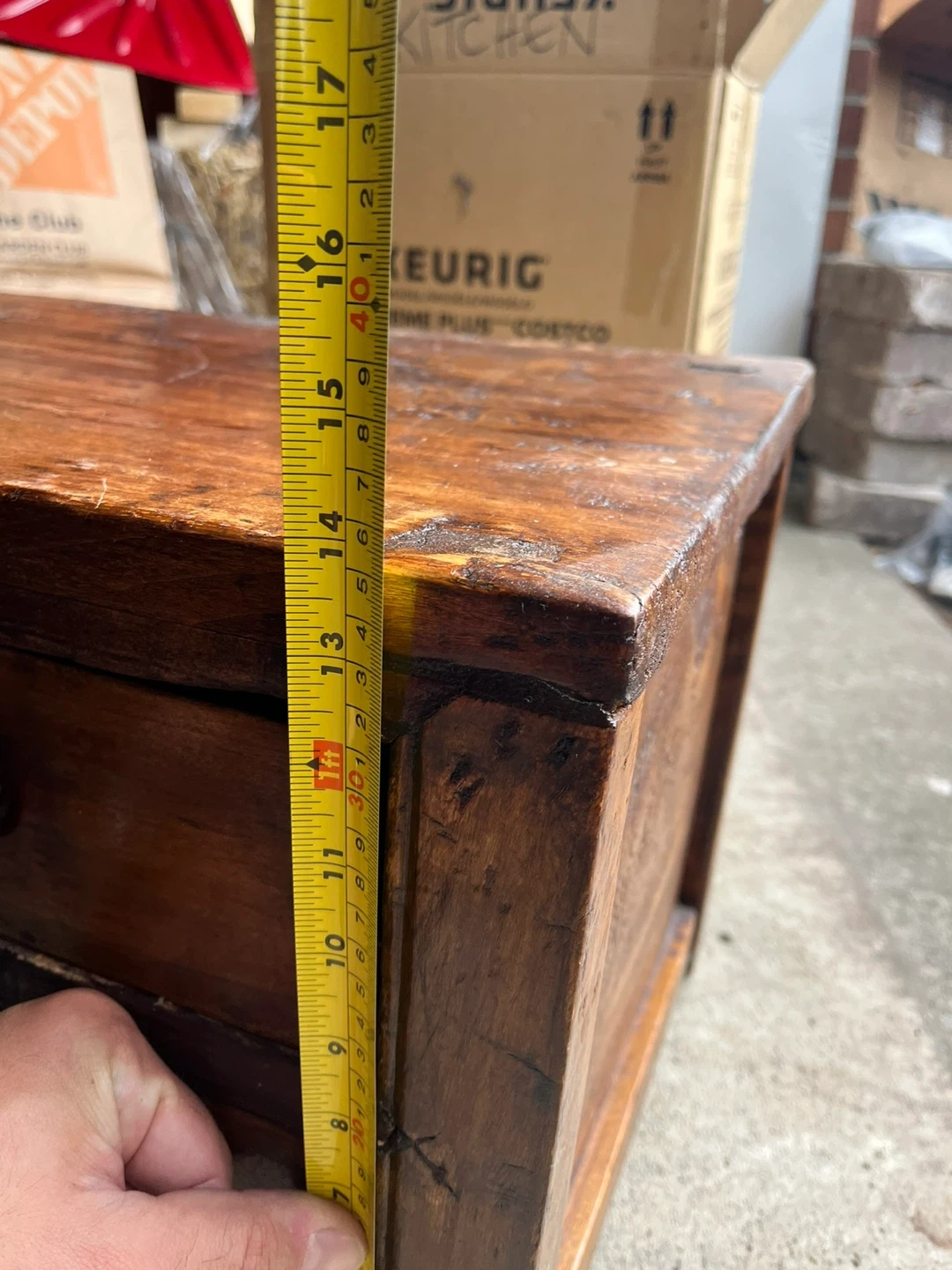 Antique Asian wooden cabinet great as a media stand. It has multiple drawers and doors for storage. Please note there is small damage to pin that holds door, as shown in the pictures, that could be fixed with some wood glue.